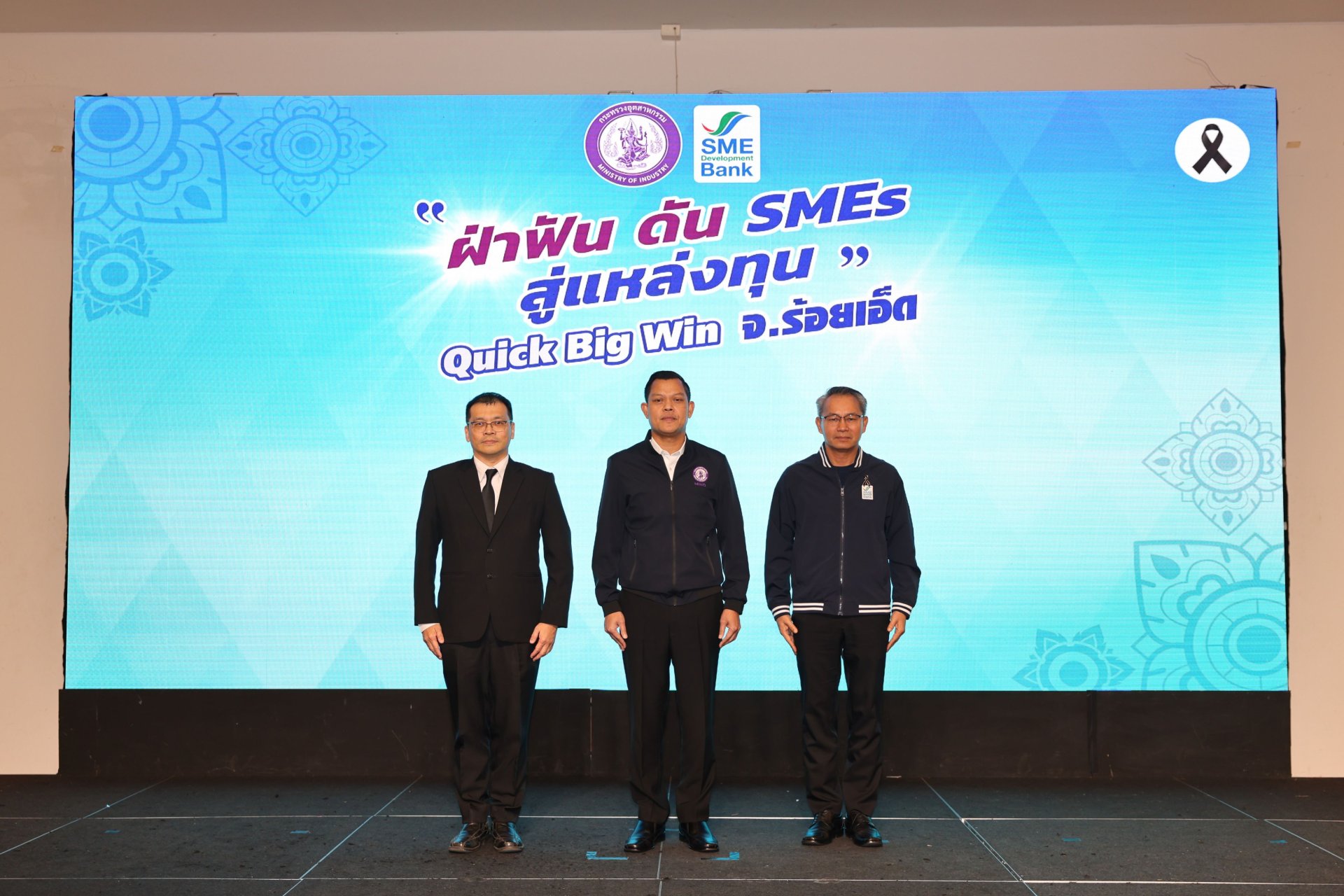 กระทรวงอุตสาหกรรม มอบหมาย SME D Bank ขับเคลื่อนนโยบาย ฝ่า ฟัน ดึง ดัน เสริมแกร่งเอสเอ็มอีในส่วนภูมิภาค จัดใหญ่มหกรรม ฝ่าฟัน ดัน SMEs สู่แหล่งทุน ประเดิม จ.ร้อยเอ็ด พาผู้ประกอบการเข้าถึงบริการ 3 เติม ได้แก่ เติมทุนดอกเบี้ยพิเศษ 3%ต่อปี เติมความรู้ Upskill Reskill ยกระดับธุรกิจ และเติมโอกาสแก้ไขหนี้ยั่งยืน ช่วยก้าวผ่านวิกฤต เดินหน้าต่อสู่การเติบโตยั่งยืน