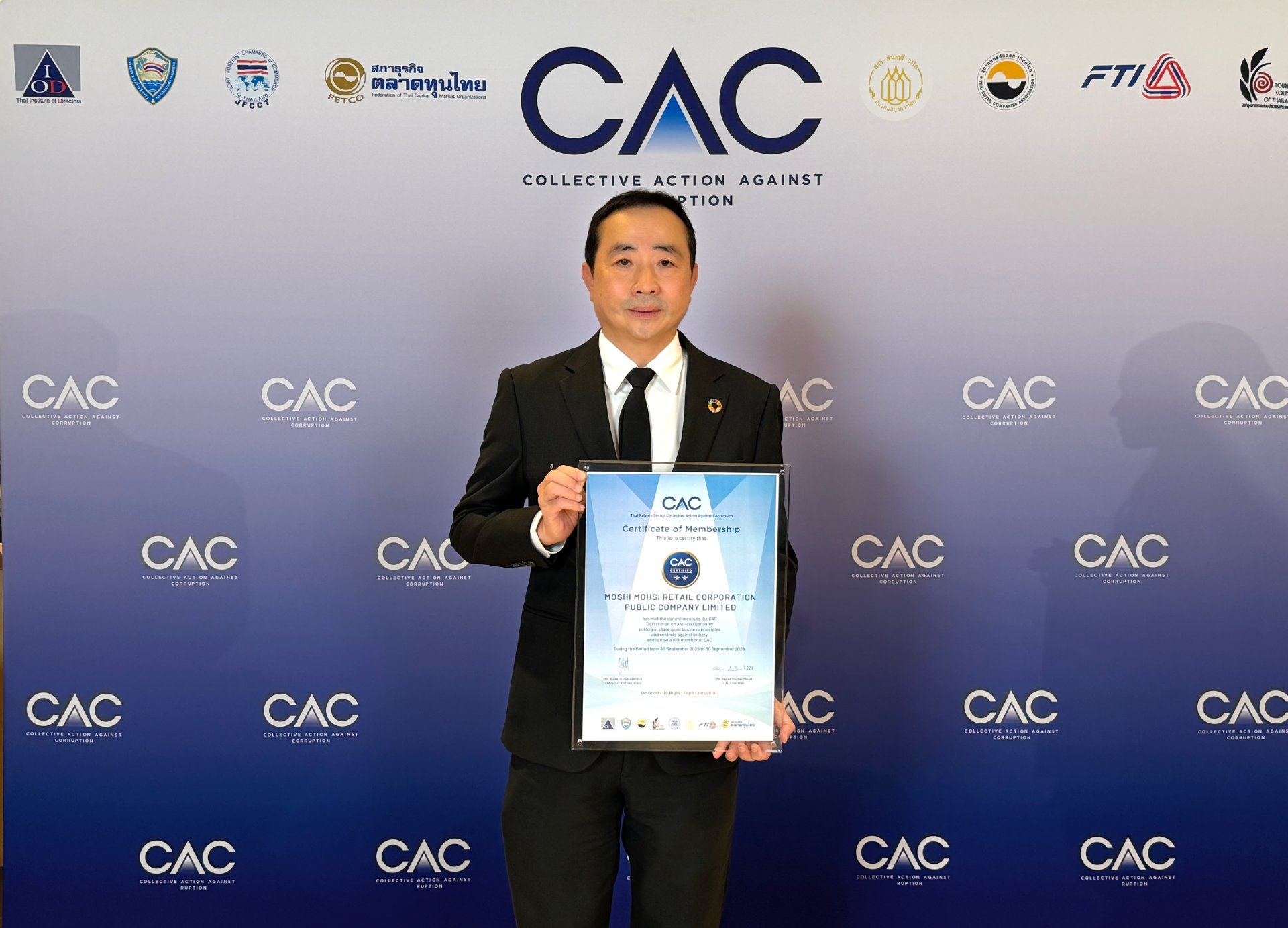 นายสง่า บุญสงเคราะห์ ประธานเจ้าหน้าที่บริหาร บริษัท โมชิ โมชิ รีเทล คอร์ปอเรชั่น จำกัด (มหาชน) หรือ MOSHI รับมอบใบประกาศนียบัตรรับรองการเป็นสมาชิกแนวร่วมต่อต้านคอร์รัปชันของภาคเอกชนไทย (Thai Private Sector Collective Action Against Corruption: CAC) จากคณะกรรมการ CAC เป็นครั้งแรก นับเป็นเครื่องยืนยันถึงจุดยืนที่แข็งแกร่งของ MOSHI ในการดำเนินธุรกิจบนหลักธรรมาภิบาลที่ดี มีความโปร่งใส ตรวจสอบได้ และยืนหยัดต่อต้านการทุจริตคอร์รัปชันทุกรูปแบบ ตอกย้ำบทบาทขององค์กรในการร่วมสร้างรากฐานการกำกับดูแลกิจการที่ดีให้ภาคธุรกิจไทย สอดคล้องกับเป้าหมายการพัฒนาองค์กรอย่างยั่งยืน