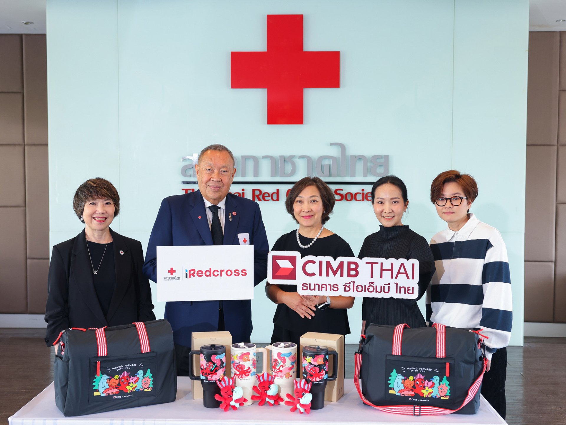 ธนาคาร ซีไอเอ็มบี ไทย และ Donation HUB สภากาชาดไทย ผู้พัฒนาแพลตฟอร์ม iRedcross ผนึกกำลังร่วมกันเปิดตัว CIMB CHARITY : CIMB x NEWYEAR อย่างเป็นทางการ โดยมี อุทัยวรรณ สุขพรรณพิมพ์ ผู้ช่วยกรรมการผู้จัดการใหญ่ Brand & Marketing และ ณัฐณี เกษมรัฐกุล ผู้อำนวยการอาวุโส สื่อสารองค์กร ธนาคาร ซีไอเอ็มบี ไทย พร้อมด้วย ขรรค์ ประจวบเหมาะ ผู้อำนวยการสำนักงานจัดหารายได้ สภากาชาดไทย และ จันทร์ประภา วิชิตชลชัย รองผู้อำนวยการสำนักงานจัดหารายได้ สภากาชาดไทย ร่วมกันเป็นประธานเปิดตัวของขวัญคอลเล็กชันพิเศษ