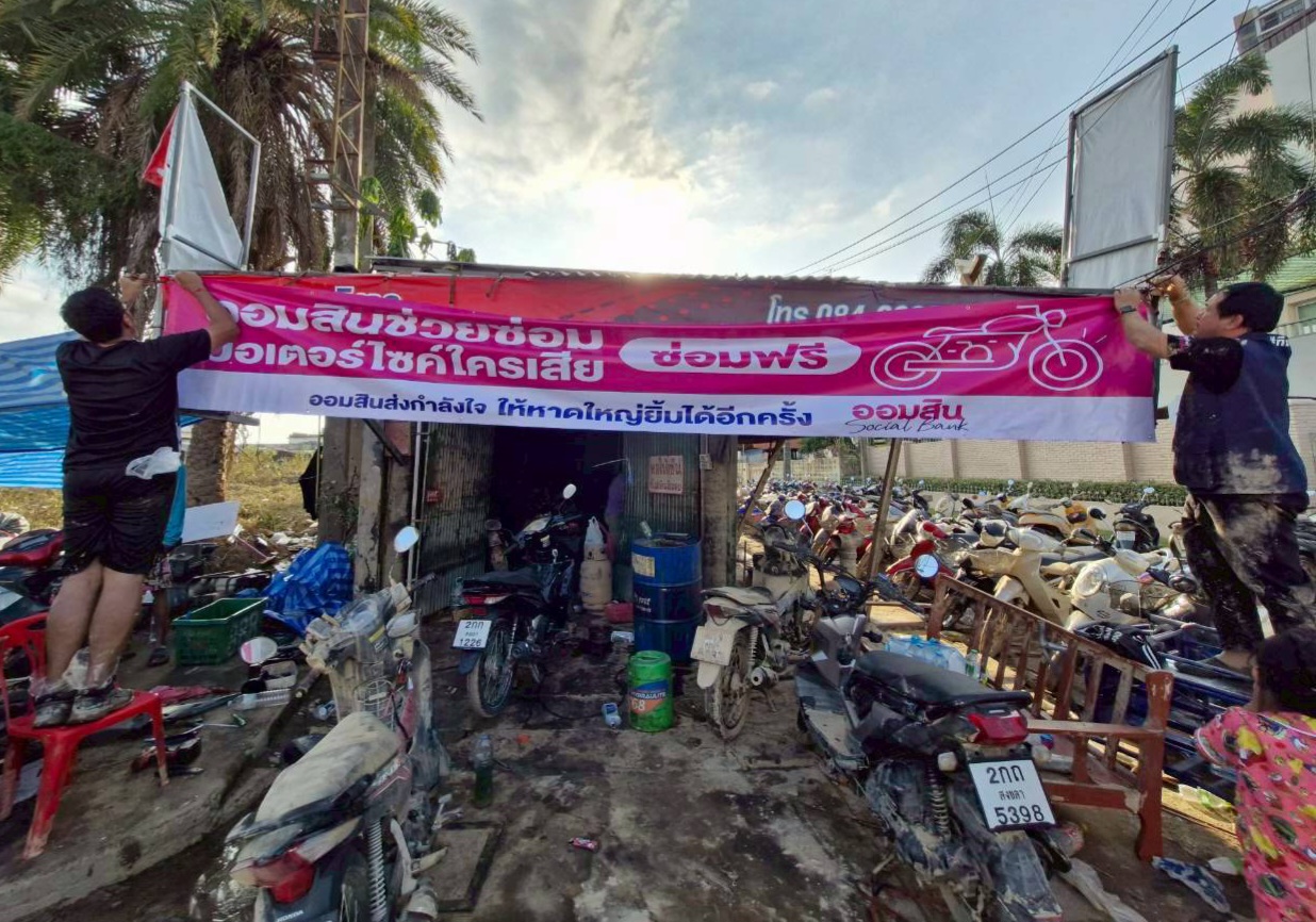 ออมสิน ลุยฟื้นฟูหาดใหญ่ เก็บกวาด–เช็ดล้าง–ซ่อมแซม เปิดจุด “ออมสินช่วยซ่อม” มอเตอร์ไซค์ ฟรี! พร้อมรถโมบายให้บริการฝาก - ถอนเงินสด และโรงครัวออมสิน ณ ลานหน้าห้างบิ๊กซี เอ็กซ์ตร้า หาดใหญ่