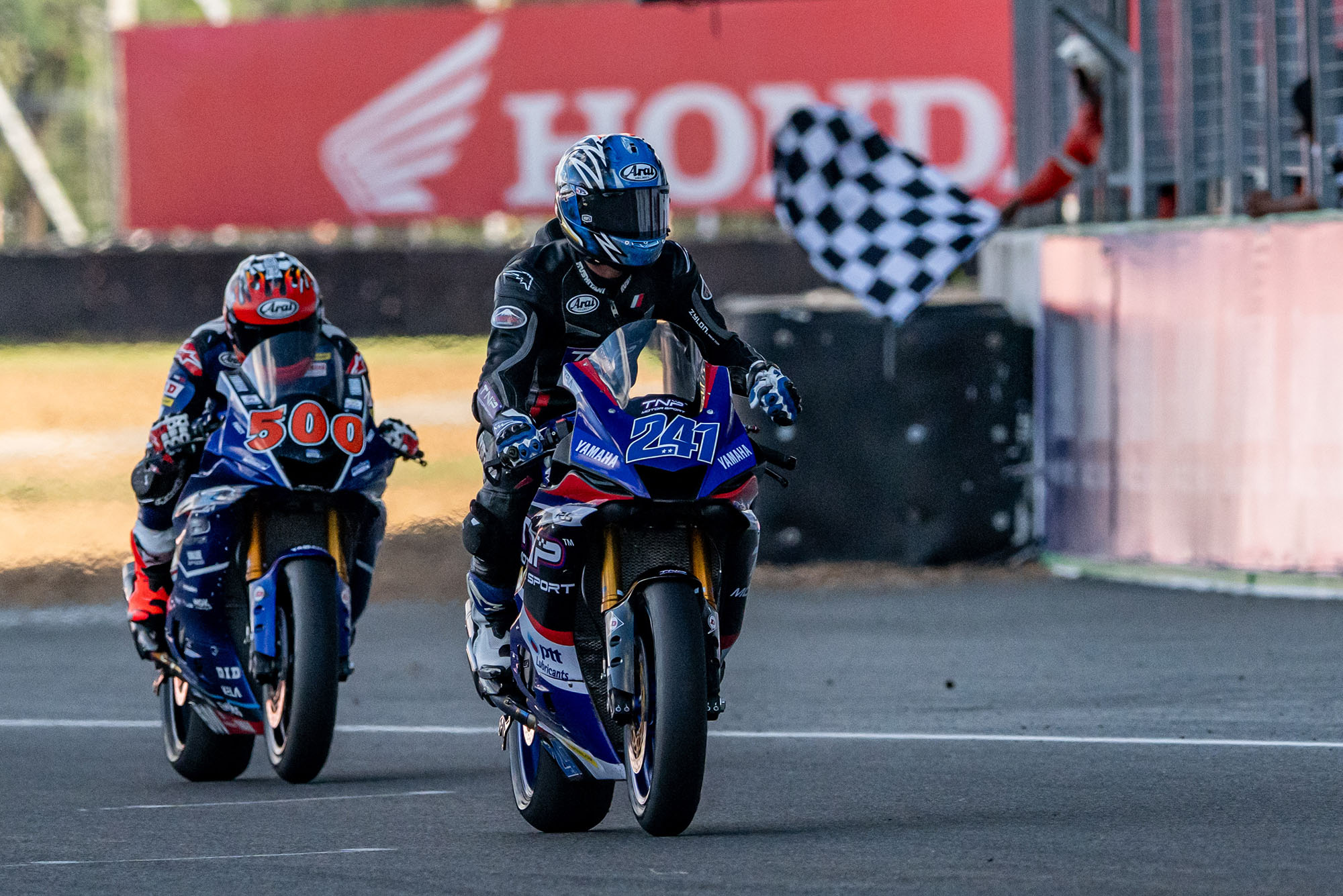 ศึกสองล้อรายการใหญ่ที่สุดของเอเชียดวลกันสุดมันส์ นักบิดไทยพาเหรดสร้างผลงานสุดกระหึ่มโฮมเรซ โดย แสตมป์ อภิวัฒน์ วงศ์ธนานนท์ แชมป์เอเชีย 2 สมัยจาก ยามาฮ่า ทีเอ็นพี เข้าวิน ซูเปอร์สปอร์ต 600 ซีซี ขณะ ตี อนุภาพ ซามูล จาก ยามาฮ่า ไทยแลนด์ เรซซิ่ง ทีม รั้งอันดับ 2 จี้จ่าฝูงเหลือ 3 แต้ม ด้าน ชิพ นครินทร์ อธิรัฐภูวภัทร์ จาก ฮอนด้า เรซซิ่ง ไทยแลนด์ จบอันดับ 4 รุ่นใหญ่ยังมีลุ้นแชมป์เอเชีย ด้านเอเชีย โปรดักชั่น 250 ซีซี ไอเดีย กฤตภัทร เขื่อนคำ จาก ยามาฮ่า ไทยแลนด์ เรซซิ่ง ทีม ผงาดโพเดียมอันดับ 2 ส่วน อุ้ม นพรุธพงษ์ บุญประเวศ ดาวรุ่งจาก ฮอนด้า เรซซิ่ง ไทยแลนด์ ลงบิดด้วยสิทธิ์ไวลด์การ์ดโชว์ฟอร์มร้อนแรง ประเดิมโพเดียมอันดับ 3 ได้สำเร็จ