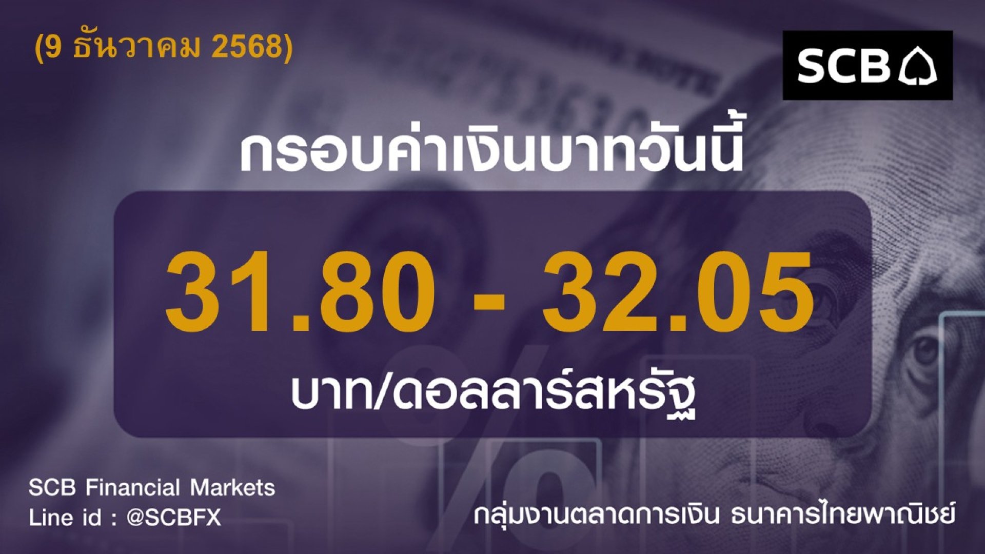กลุ่มงานตลาดการเงิน ธนาคารไทยพาณิชย์ (SCB Financial Markets) ค่าเงินบาทประจำวันที่ 9 ธันวาคม 2568