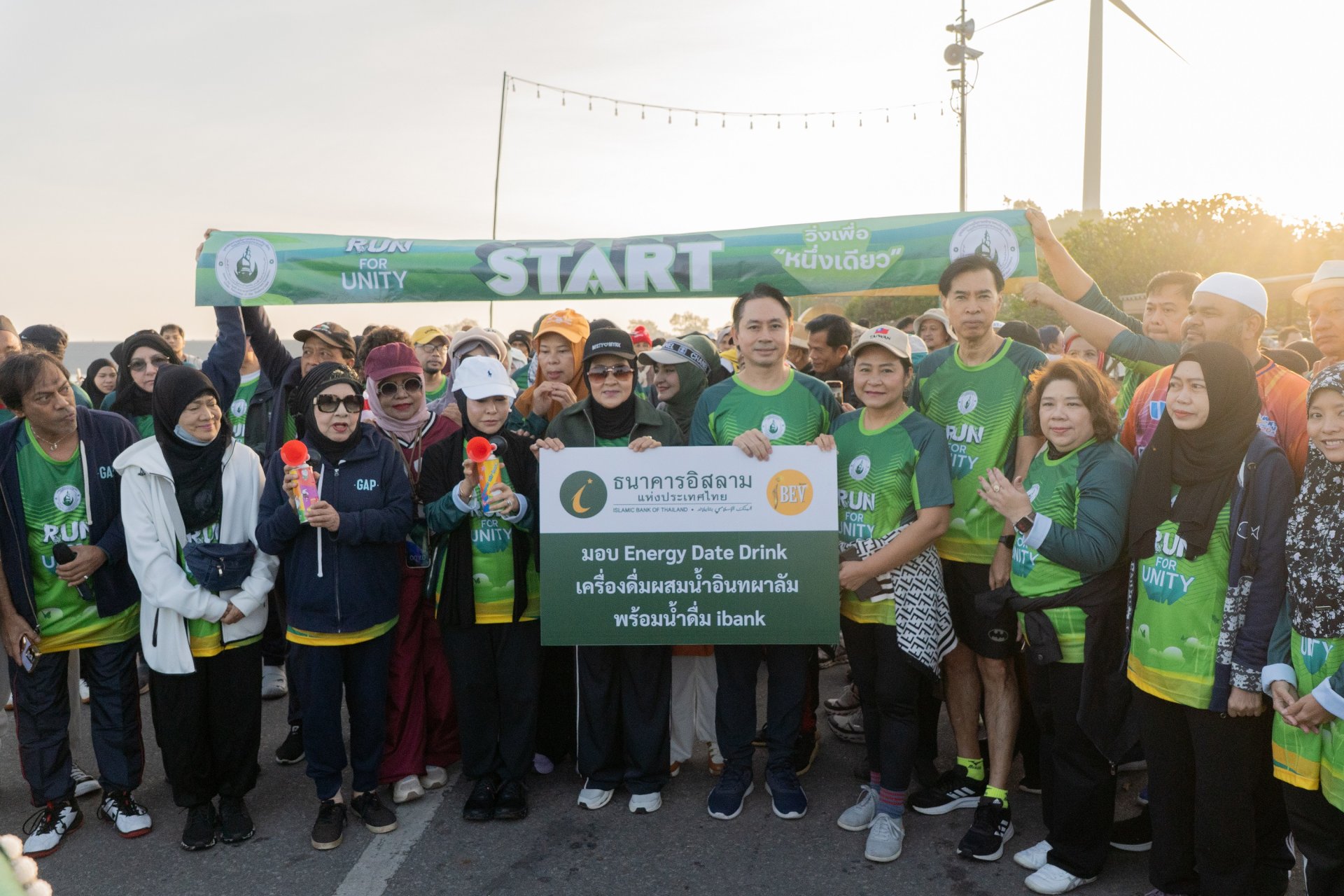 ธนาคารอิสลามแห่งประเทศไทย (ไอแบงก์) โดย นายกูยไวนี สตอหลง ผู้อำนวยการฝ่ายสื่อสารและภาพลักษณ์องค์กร และนางพรทิพา โตวิชัย ผู้อำนวยการฝ่ายกิจการสาขา 2 นำคณะผู้บริหาร เพื่อนพนักงาน และทีมงานสาขานครราชศรีมาเข้าร่วมกิจกรรมวิ่งเพื่อหนึ่งเดียว Run for Unity ครั้งที่ 1 และมอบ Energy Date Drink เครื่องดื่มผสมน้ำอินทผาลัม จากลูกค้าพันธมิตรในนามไอเบฟ พร้อมนำดื่มไอแบงก์ รวม 900 ขวด แก่ ฮัจยะห์ดารา ขัตติยะอารี ประธานมูลนิธิแม่บ้านไทยมุสลิม ผู้แทนประธานจัดงานให้เกียรติรับมอบ