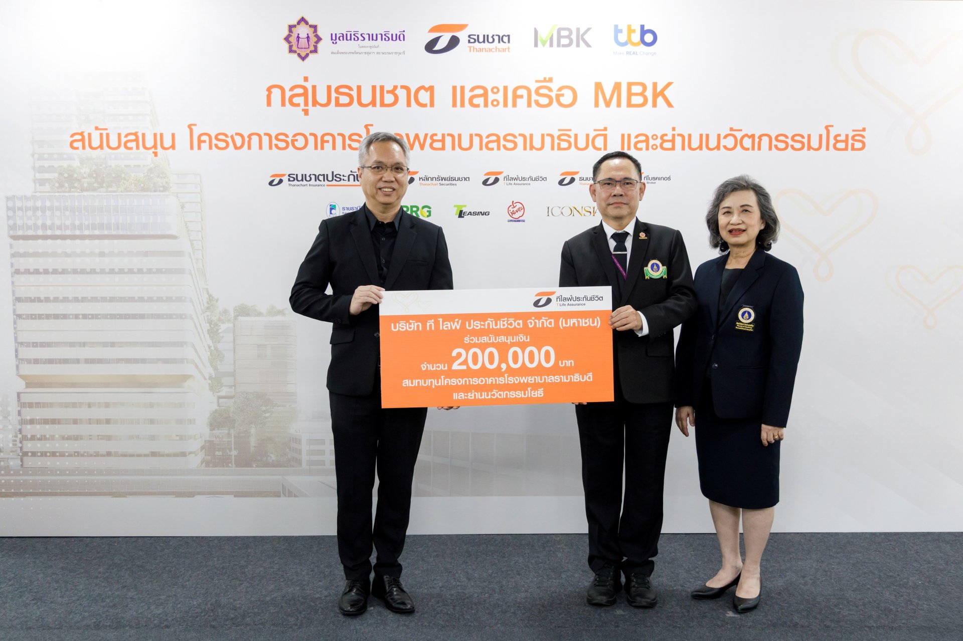 บริษัท ที ไลฟ์ ประกันชีวิต จำกัด (มหาชน) บริษัทในกลุ่มธนชาต ตอกย้ำเจตนารมณ์ด้านความรับผิดชอบต่อสังคม (CSR) มอบเงินสนับสนุนมูลนิธิรามาธิบดีฯ จำนวน 200,000 บาท โดยมี นายวุฒิเลิศ สุวรรณศรี กรรมการผู้จัดการ เป็นผู้แทนในการส่งมอบเงินสนับสนุน และได้รับเกียรติจาก รศ.นพ.ประกาศิต จิรัปปภา กรรมการมูลนิธิรามาธิบดีฯ และ ผศ.สุพัตรา ลีลาภิวัฒน์ ที่ปรึกษา คณะกรรมการบริหารมูลนิธิรามาธิบดีฯ ร่วมรับมอบ ณ อาคารเอ็มบีเค ทาวเวอร์