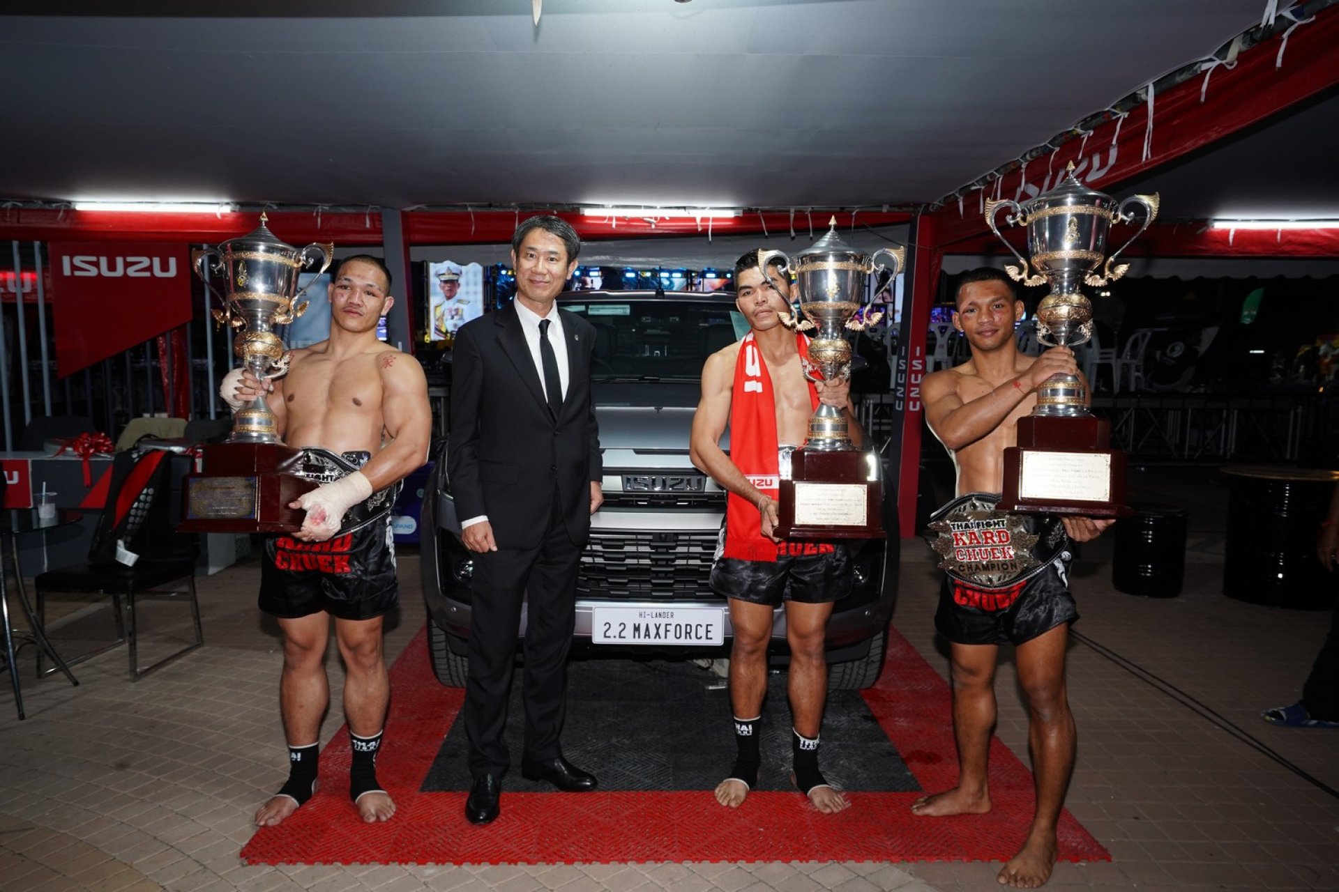 มร. ทาคาชิ ฮาตะ กรรมการผู้จัดการ บริษัท ตรีเพชรอีซูซุเซลส์ จำกัด กล่าวว่า ขอแสดงความยินดีกับ จรวดศึก และ เขี้ยวเพชร ที่คว้าแชมป์ THAI FIGHT 2025 มาครองได้อย่างสง่างาม ด้วยหัวใจนักสู้ที่แข็งแกร่งจนได้รับพระราชทานถ้วยรางวัลอันทรงเกียรติ ซึ่งถือเป็นความสำเร็จอันน่าภาคภูมิใจในอาชีพนักชก ผมขออวยพรให้ทั้งสองท่านประสบความสำเร็จยิ่งขึ้นไปในอนาคต พร้อมกันนี้ ขอขอบคุณผู้ชมทุกท่าน ที่ให้การสนับสนุนรถอีซูซุ รายการ Isuzu Thailand Championship และ THAI FIGHT ด้วยดีเสมอมา ทุกแรงใจของท่านคือพลังสำคัญที่ขับเคลื่อนให้อีซูซุมุ่งมั่นพัฒนาอย่างไม่หยุดยั้ง และเราหวังเป็นอย่างยิ่งว่าจะได้รับความไว้วางใจจากทุกท่านเช่นนี้ตลอดไป