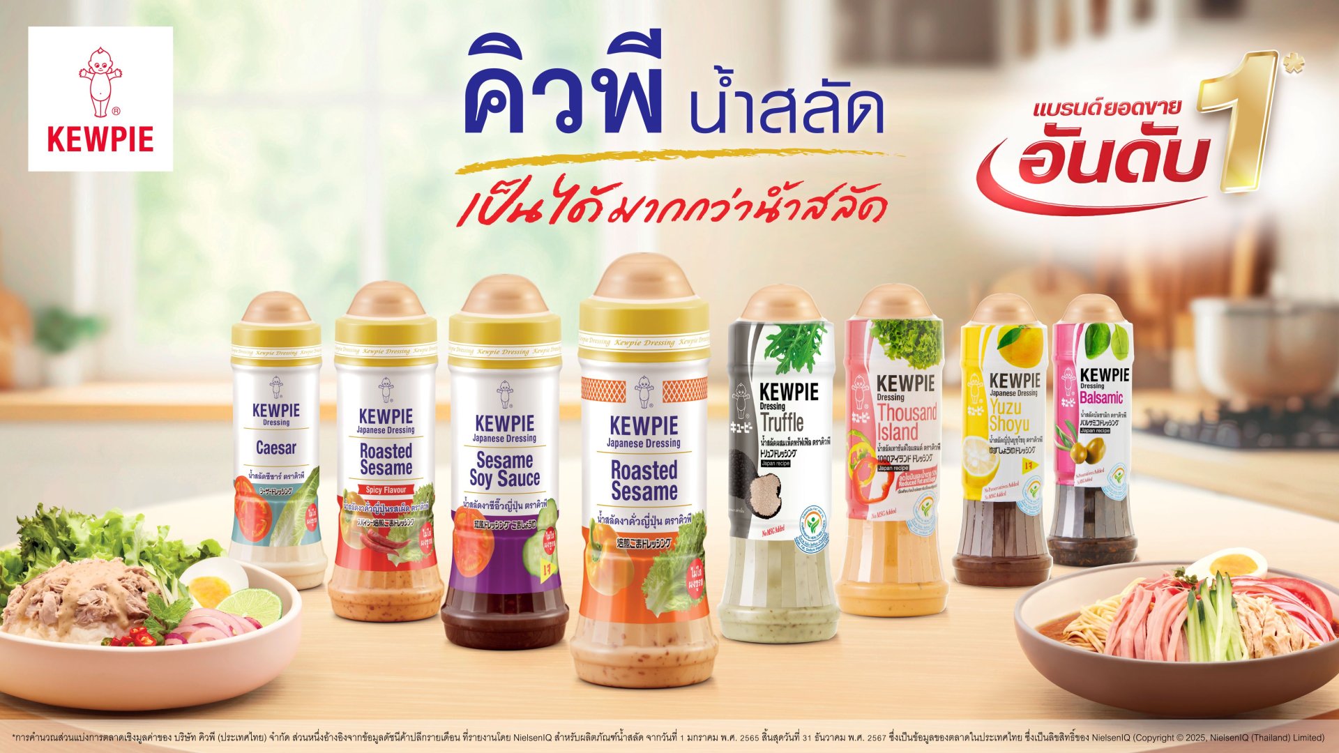 บริษัท คิวพี (ประเทศไทย) จำกัด ผู้ผลิตและจำหน่ายน้ำสลัด มายองเนส น้ำส้มสายชู และอาหารพร้อมทานคุณภาพสูงภายใต้แบรนด์ คิวพี ประกาศความสำเร็จครั้งสำคัญด้วยการครองตำแหน่งผู้นำตลาดน้ำสลัดในประเทศไทยอย่างต่อเนื่อง โดยอ้างอิงผลส่วนแบ่งการตลาดทั้งเชิงมูลค่าและปริมาณจากข้อมูลดัชนีค้าปลีกรายเดือนของ NielsenIQ (Thailand) ครอบคลุมช่วงวันที่ 1 มกราคม 2565 31 ธันวาคม 2567 ซึ่งสะท้อนอย่างชัดเจนว่า คิวพี น้ำสลัด เป็น แบรนด์ที่ผู้บริโภคชาวไทยเลือกซื้อมากที่สุด และเป็นแบรนด์น้ำสลัดยอดขายอันดับ 1 ในตลาดค้าปลีกของประเทศไทย