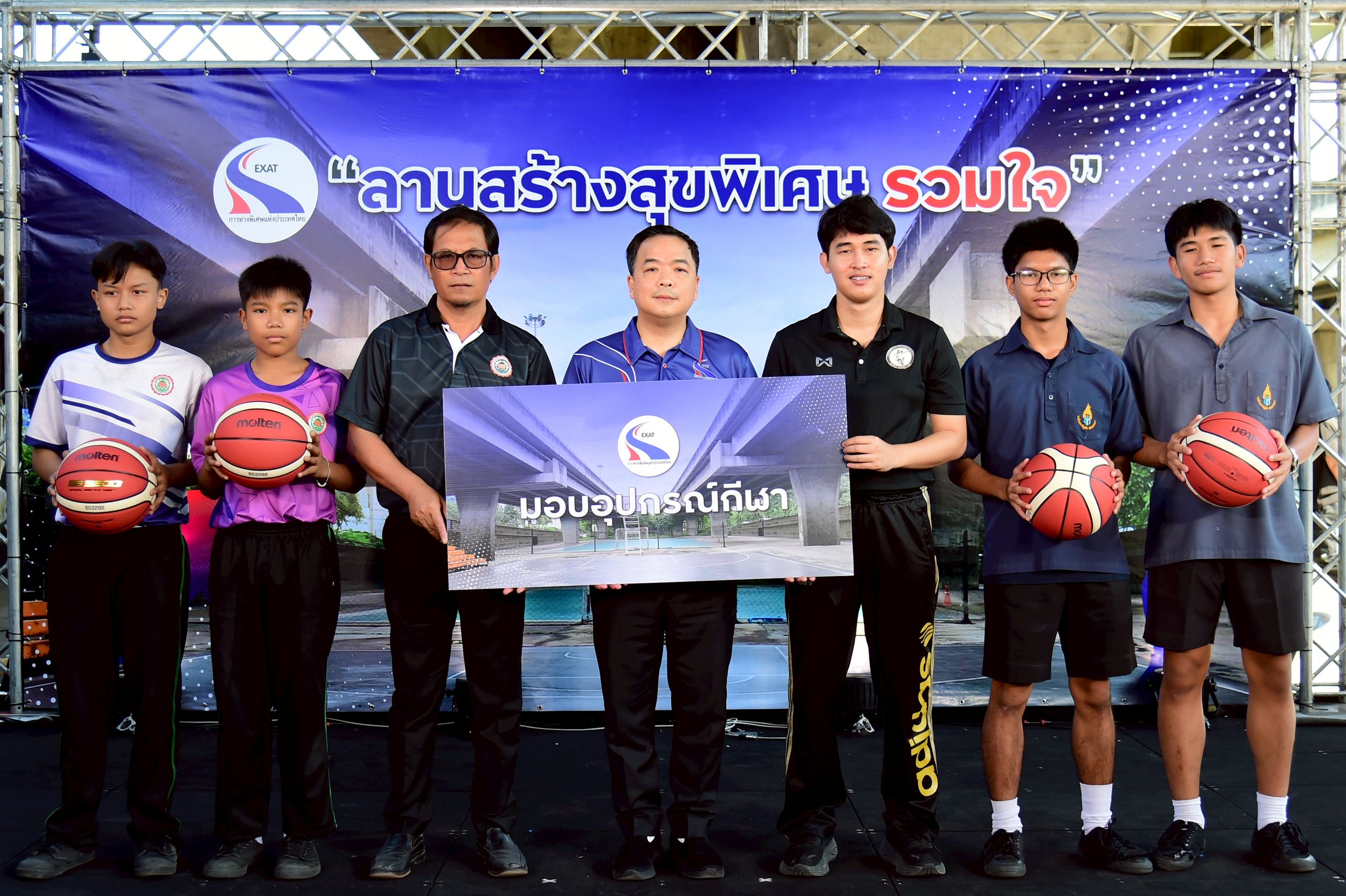 7 มกราคม 2569 – ยกระดับคุณภาพชีวิตรอบทางพิเศษ! การทางพิเศษแห่งประเทศไทย (กทพ.) กระทรวงคมนาคม เดินหน้าสานต่อพันธกิจเพื่อสังคมอย่างต่อเนื่อง ล่าสุด เปิดตัวโครงการ “ลานสร้างสุขพิเศษ รวมใจ โดย การทางพิเศษฯ” ชูสนามบาสเกตบอล สร้างสุขภาพดีให้กับชุมชน บริเวณลานกีฬาวังทองหลาง (ฝั่งเหนือ) พื้นที่ใต้ทางพิเศษฉลองรัช เพื่อเป็นพื้นที่แห่งโอกาส และส่งเสริมการออกกำลังกายของคนในชุมชน พร้อมชวนนักกีฬาบาสเกตบอลทีมชาติไทย อาร์ม-ณัฐกานต์ เมืองบุญ, เดฟ-สุขเดฟ โคเคอร์ และซุปตาร์นักชู้ต เต๋า-เศรษฐพงศ์ เพียงพอ มาร่วมถ่ายทอดทักษะ เทคนิคการเล่น และสร้างแรงบันดาลใจสู่การเป็นนักบาสเกตบอลอาชีพ พร้อมมอบอุปกรณ์กีฬาให้กับเยาวชนในพื้นที่ โดยมี นายสุรเชษฐ์ เหล่าพูลสุข ผู้ว่าการการทางพิเศษแห่งประเทศไทย (กทพ.), ผู้แทนกลุ่มงานวิชาการ กรุงเทพมหานคร และประชาชนในชุมชน โดยรอบจำนวน 4 ชุมชน ประกอบด้วย ชุมชนจันทราสุข, ชุมชนสุเหร่าดอนสะแก, ชุมชนลาดพร้าว69 และชุมชนลาดพร้าว80 ร่วมงานอย่างคึกคัก