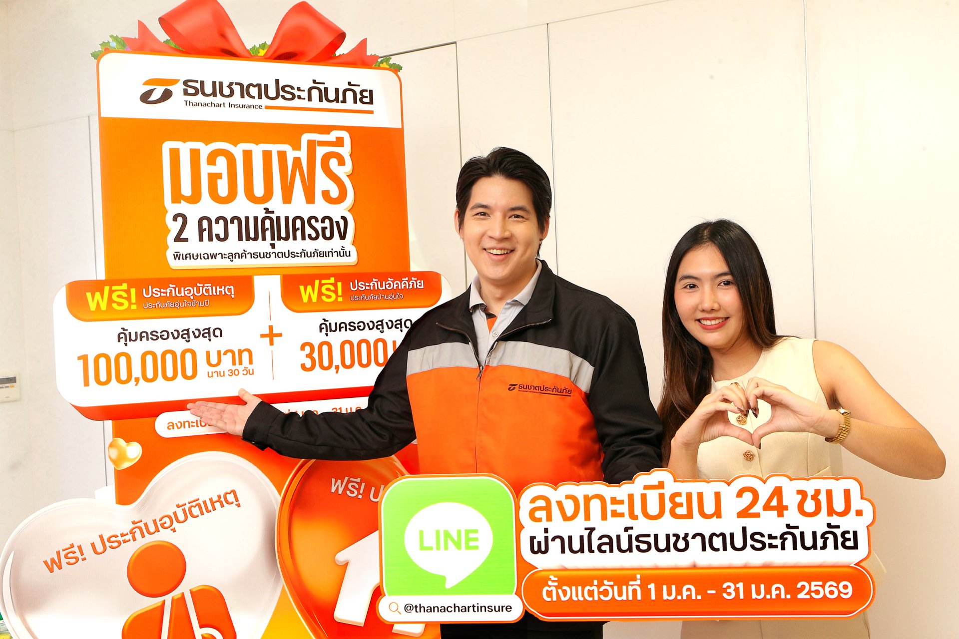 บริษัท ธนชาตประกันภัย จำกัด (มหาชน) มอบของขวัญปีใหม่ 2569 ส่งต่อความอุ่นใจให้กับลูกค้า รับฟรี! 2 ความคุ้มครอง ดูแลความเสี่ยงรอบตัวในชีวิตประจำวัน ได้แก่ ประกันอุบัติเหตุ “ประกันภัยอุ่นใจ” ที่ให้ความคุ้มครองชีวิตจากอุบัติเหตุ วงเงินคุ้มครองสูงสุด 100,000 บาท รองรับเหตุไม่คาดคิดที่อาจเกิดขึ้นในช่วงเดินทาง ท่องเที่ยว หรือใช้ชีวิตประจำวัน ควบคู่กับ ประกันอัคคีภัย “ประกันภัยบ้านอุ่นใจ” ที่ช่วยคุ้มครองความเสียหายจากอัคคีภัยสำหรับที่อยู่อาศัย วงเงินคุ้มครองสูงสุด 30,000 บาท เสริมความมั่นใจให้บ้านซึ่งเป็นพื้นที่สำคัญของทุกครอบครัว โดยทั้ง 2 ความคุ้มครองมอบให้ฟรี ไม่มีค่าใช้จ่าย พร้อมระยะเวลาคุ้มครอง นาน 30 วัน เพื่อให้ลูกค้าใช้ชีวิตได้อย่างสบายใจยิ่งขึ้น ช่วยลดความกังวลจากความเสี่ยงรอบด้าน