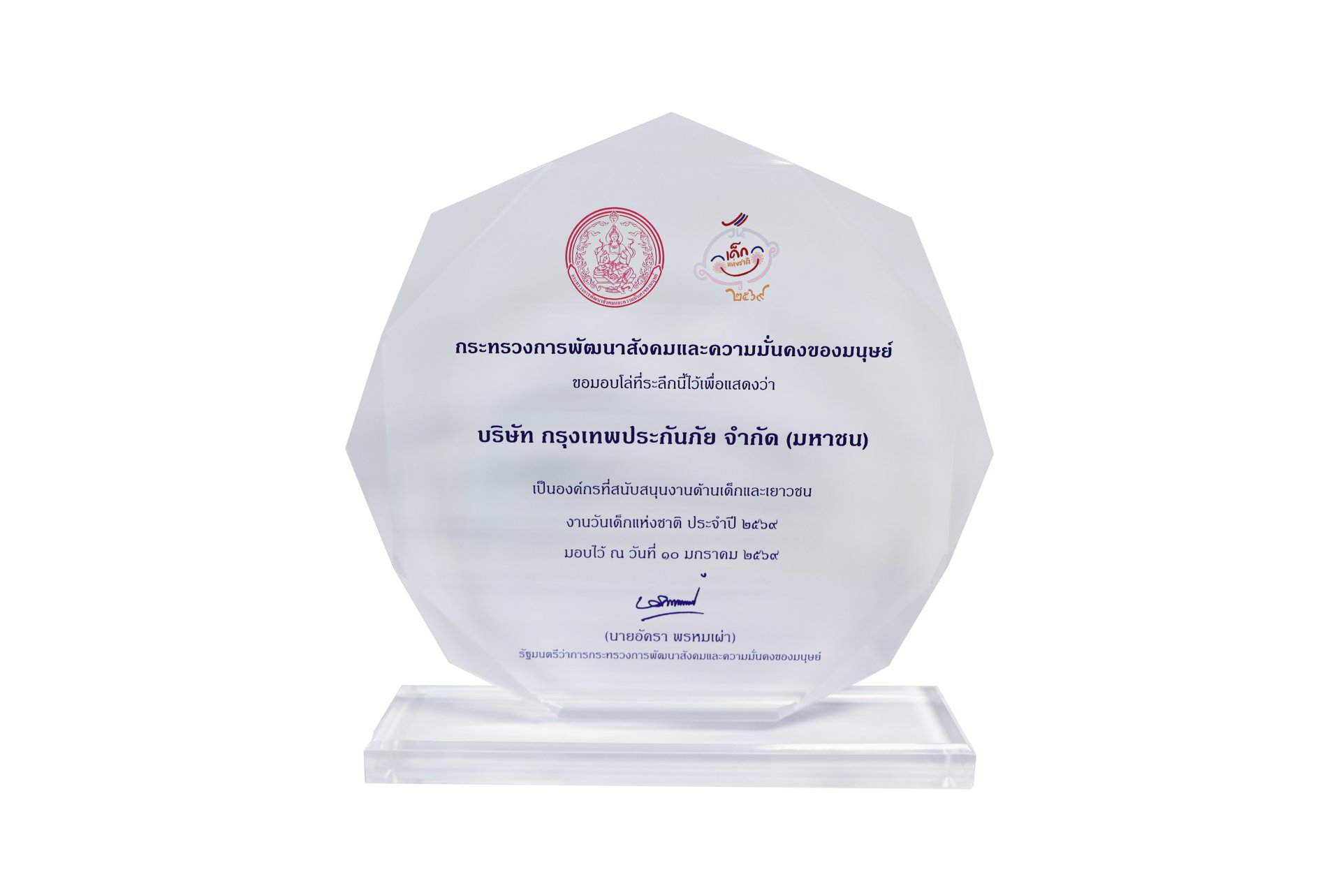 บริษัท กรุงเทพประกันภัย จำกัด (มหาชน) ได้รับรางวัลองค์กรที่สนับสนุนงานด้านเด็กและเยาวชน เนื่องในงานวันเด็กแห่งชาติ ประจำปี 2569 จากกรมกิจการเด็กและเยาวชน กระทรวงการพัฒนาสังคมและความมั่นคงของมนุษย์ โดยรางวัลดังกล่าวสะท้อนให้เห็นถึงการให้ความสำคัญและการมีส่วนร่วมของบริษัทฯ ในการสนับสนุน ส่งเสริม และพัฒนาศักยภาพของเด็กและเยาวชน เพื่อนำไปสู่การเติบโตที่เข้มแข็งและยั่งยืน ตลอดจนร่วมเสริมสร้างคุณภาพชีวิตที่ดีให้เด็กและเยาวชนด้วยการสร้างสภาพแวดล้อมที่เหมาะสมและสามารถใช้ชีวิตได้อย่างมีความสุข นับเป็นอีกหนึ่งความภาคภูมิใจที่ตอกย้ำถึงความรับผิดชอบต่อสังคมขององค์กรอย่างต่อเนื่อง