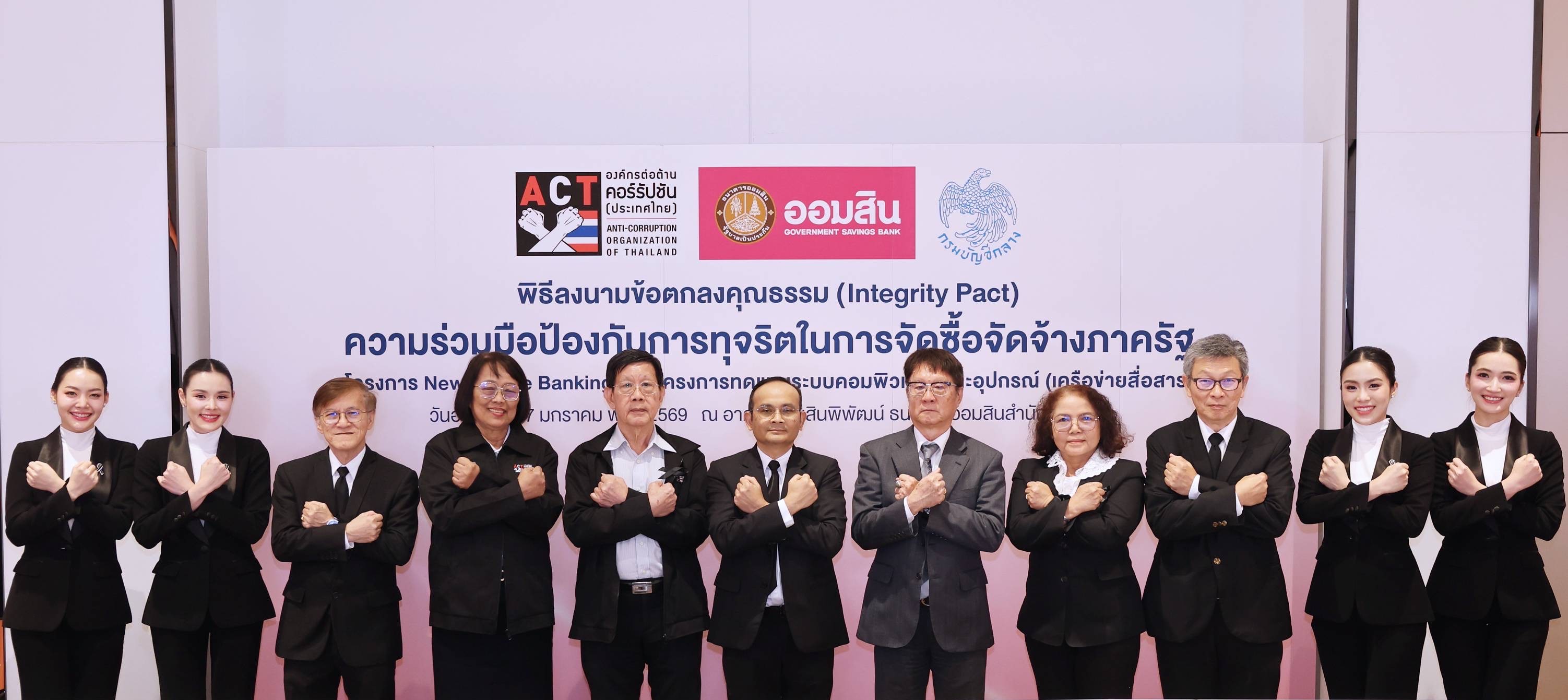 การทุจริตและประพฤติมิชอบในภาครัฐที่สร้างความไม่เป็นธรรมและเหลื่อมล้ำในสังคม สำหรับโครงการที่มีวงเงินจัดซื้อจัดจ้างตั้งแต่ 1,000 ล้านบาทขึ้นไป โดยสอดคล้องกับการดำเนินการด้วยหลักธรรมาภิบาลของธนาคาร ที่ให้ความสำคัญในการบริหารจัดการงบประมาณ และทรัพยากรของธนาคาร ด้วยความรอบคอบ โปร่งใส และเกิดประโยชน์สูงสุด มีกระบวนการทำงานที่มีความสุจริต เที่ยงธรรม ตรวจสอบได้ในทุกขั้นตอน และเปิดโอกาสให้ภาคเอกชนเข้าแข่งขันอย่างเท่าเทียม โดยมี นางสาวศิริพร เลิศสัตยสุกใส นายณัทธร โพธิแพทย์ รองผู้อำนวยการธนาคารออมสิน พร้อมด้วย นางสาวสิรินันท์ จิรดิลก กรรมการผู้จัดการ บริษัท จีเอสบี ไอที แมเนจเม้นท์ จำกัด ในฐานะกรรมการโครงการ และนายกิตติเดช ฉันทังกูล ผู้อำนวยการองค์กรต่อต้านคอร์รัปชัน (ประเทศไทย) ร่วมเป็นสักขีพยาน ณ อาคารออมสินพิพัฒน์ ธนาคารออมสิน สำนักงานใหญ่ เมื่อวันที่ 27 มกราคม 2569
