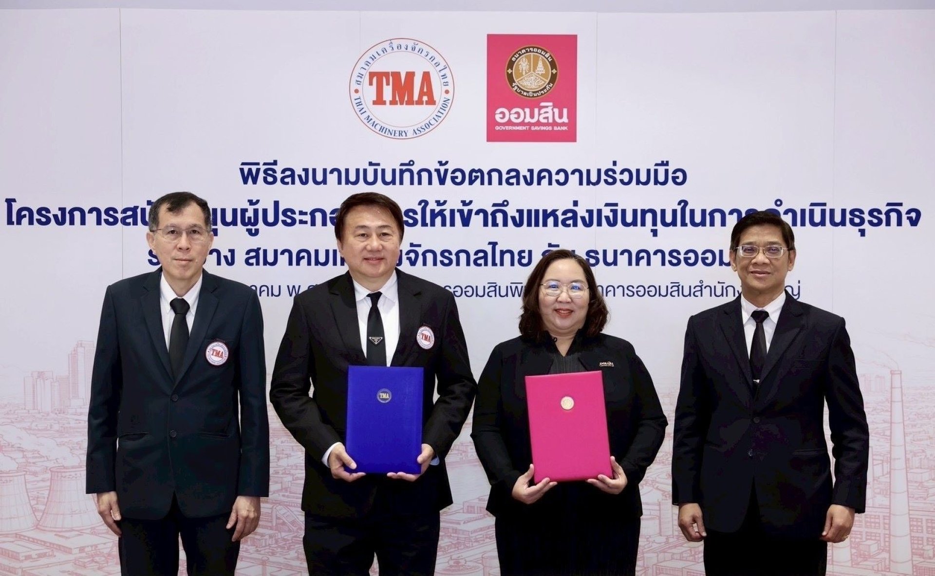 นางลภาวรรณ จันทร์กระจ่าง รองผู้อำนวยการธนาคารออมสิน รักษาการแทนผู้อำนวยการธนาคารออมสิน ลงนามบันทึกข้อตกลงความร่วมมือโครงการสนับสนุนผู้ประกอบการให้เข้าถึงแหล่งเงินทุนในการดำเนินธุรกิจ กับ ดร.ชัชนันท์ ถนอมวรสิน นายกสมาคมเครื่องจักรกลไทย โดยสนับสนุนสินเชื่อดอกเบี้ยต่ำ เพื่อเสริมสภาพคล่องให้แก่ผู้ประกอบการสมาชิกของสมาคมเครื่องจักรกลไทย ทำให้เกิดการลงทุน เพิ่มประสิทธิภาพผลผลิต และเกิดการใช้จ่ายในห่วงโซ่อุปทานที่เกี่ยวข้อง ขณะที่สมาคมเครื่องจักรกลไทย จะร่วมพัฒนาเทคโนโลยี นวัตกรรม และกระบวนการผลิตที่มีประสิทธิภาพ ส่งเสริมการใช้เทคโนโลยีสะอาด และระบบเครื่องจักรอัจฉริยะเพื่อช่วยลดต้นทุน เพิ่มผลผลิต และลดผลกระทบต่อสิ่งแวดล้อม สอดคล้องกับนโยบายภาครัฐในการขับเคลื่อนเศรษฐกิจฐานนวัตกรรม (Innovation Based Economy) และเปลี่ยนผ่านไปสู่ Green Transition ซึ่งเป็นปัจจัยสำคัญในการยกระดับขีดความสามารถการแข่งขันของประเทศในระยะยาว โดยมี นายภิรมย์ โพธิ์เจริญ ผู้ช่วยผู้อำนวยการธนาคารออมสิน สายงานลูกค้าธุรกิจ SMEs และ นายประสาร บุนฑารักษ์ เลขาธิการสมาคมเครื่องจักรกลไทย และสมาชิกสมาคมฯ ร่วมในพิธี ณ อาคารออมสินพิพัฒน์ ธนาคารออมสิน สำนักงานใหญ่ เมื่อวันที่ 28 มกราคม 2569