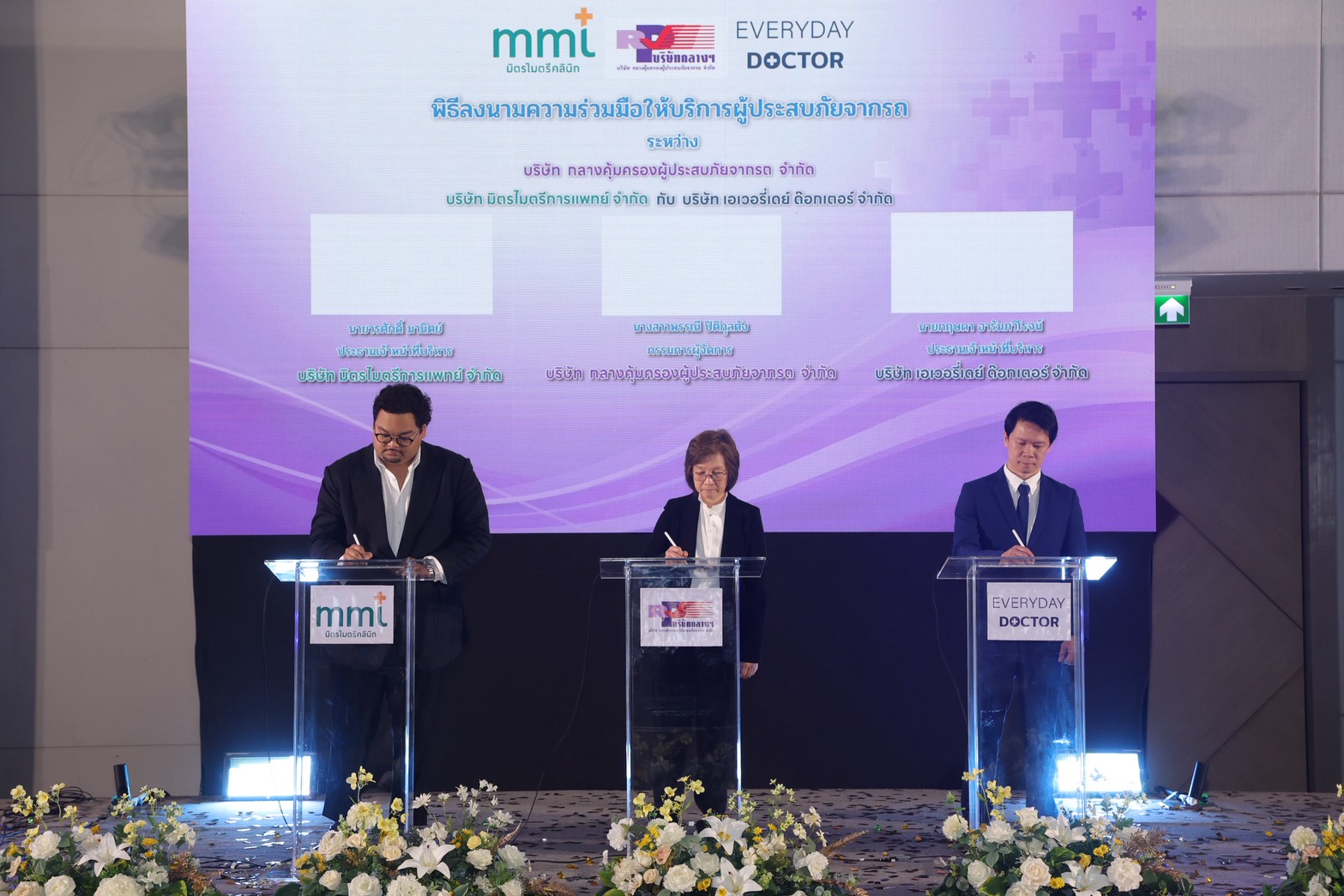 ในโอกาสเดียวกันนี้ บริษัท กลางคุ้มครองผู้ประสบภัยจากรถ จำกัด ได้ลงนามบันทึกข้อตกลงความร่วมมือในการให้บริการแก่ผู้ประสบภัยจากรถ ร่วมกับบริษัท มิตรไมตรีการแพทย์ จำกัด และบริษัท เอเวอรี่เดย์ ด๊อกเตอร์ จำกัด เพื่อบูรณาการความร่วมมือในการยกระดับคลินิกให้เป็นหน่วยบริการด้านการรักษาระดับปฐมภูมิ สำหรับผู้ประสบภัยจากรถ แทนการเข้ารับการรักษาในโรงพยาบาล สามารถเข้าถึงการบริการที่สะดวก รวดเร็ว รวมถึงความพึงพอใจในการรับบริการ