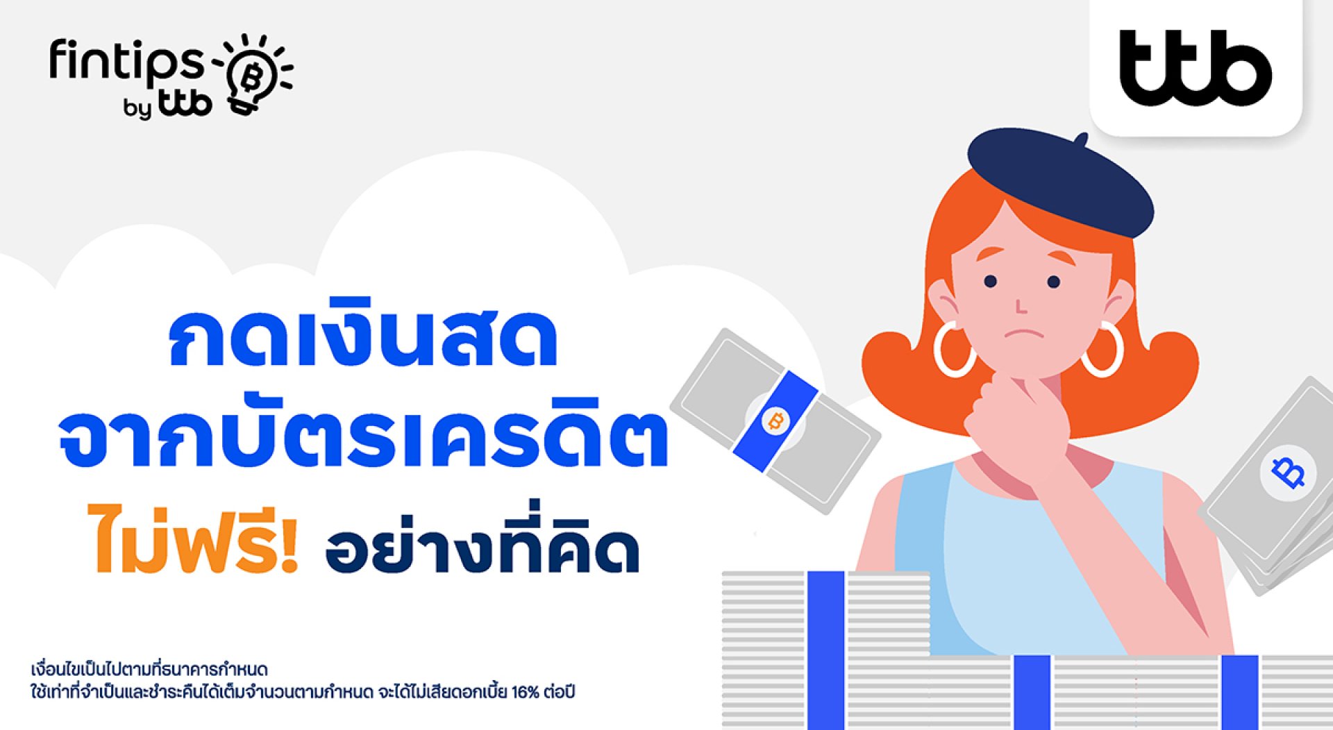 คลิกเพื่ออ่านบทความฉบับเต็มได้ที่ https://www.ttbbank.com/th/fin-tips/detail/creditcard-avoid-cash-advance-on-creditcard หรือ ติดตามเคล็ดลับการเงินอื่น ๆ จาก “fintips by ttb” เรื่องเงินที่รู้จริงแบบเพื่อนที่รู้ใจ คลิก https://www.ttbbank.com/link/fintips-pr