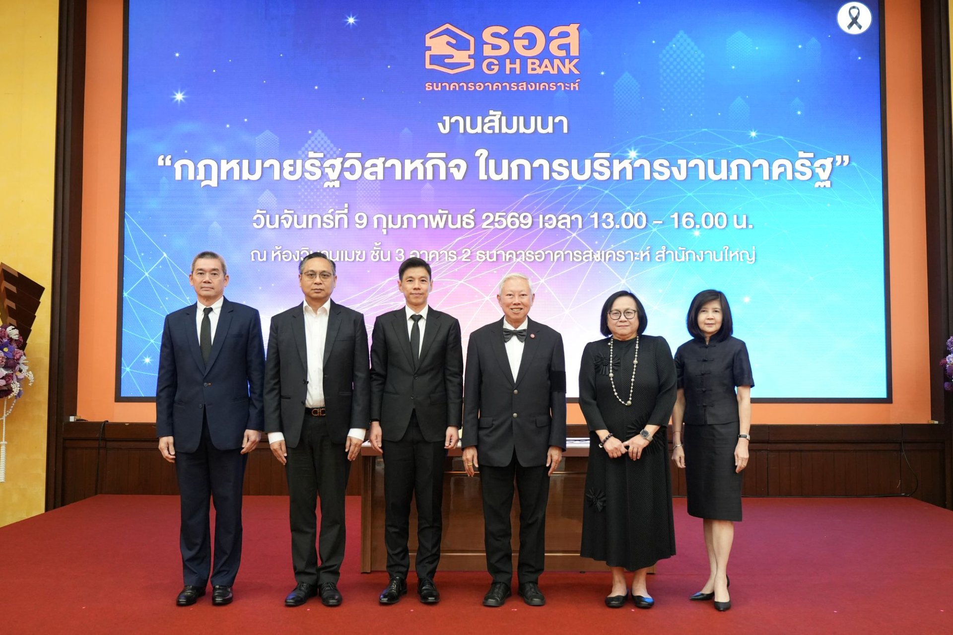 ธนาคารอาคารสงเคราะห์ (ธอส.) จัดงานสัมมนา “กฎหมายรัฐวิสาหกิจ ในการบริหารงานภาครัฐ” โดยได้รับเกียรติจากศาสตราจารย์กิตติคุณ ดร.บวรศักดิ์ อุวรรณโณ รองนายกรัฐมนตรี บรรยายในหัวข้อ “กฎหมายรัฐวิสาหกิจ ในการบริหารงานภาครัฐ” เพื่อเสริมสร้างความรู้ความเข้าใจเกี่ยวกับโครงสร้างและหลักการสำคัญ ของกฎหมายรัฐวิสาหกิจและกฎหมายอื่นที่เกี่ยวข้องกับการบริหารงานภาครัฐ สร้างมาตรฐานในการปฏิบัติงานที่ถูกต้อง ลดข้อผิดพลาดและเพิ่มประสิทธิภาพในการประสานงานระหว่างหน่วยงานรัฐวิสาหกิจ ซึ่งธนาคารให้ความสำคัญสูงสุด แก่การดำเนินกิจการด้วยความถูกต้อง โปร่งใส ยึดมั่นหลักกฎหมายเกี่ยวกับรัฐวิสาหกิจ หลักการกำกับดูแลกิจการที่ดี และกฎเกณฑ์กำกับดูแลที่เกี่ยวข้อง โดยสามารถตอบสนองนโยบายของรัฐบาลในการพัฒนาเศรษฐกิจและสังคมของประเทศ ในการบริหารงานภาครัฐโดยรวมได้อย่างมีประสิทธิภาพ ซึ่งภายในงานมีผู้แทนจากหน่วยงานกำกับดูแล องค์กรอิสระ และรัฐวิสาหกิจต่าง ๆ เข้าร่วมรับฟัง กว่า 180 ท่าน อาทิ เลขาธิการคณะกรรมการป้องกันและปราบปรามการฟอกเงิน (ปปง.), สำนักงานคณะกรรมการป้องกันและปราบปรามการทุจริตแห่งชาติ (ป.ป.ช.), สำนักงานศาลยุติธรรม, สำนักงานศาลปกครอง, สำนักงานอัยการสูงสุด, สำนักงานตรวจเงินแผ่นดิน, กรมบัญชีกลาง, สำนักงานเศรษฐกิจการคลัง, ธนาคารแห่งประเทศไทย และสถาบันการเงินของรัฐ 7 แห่ง เป็นต้น โดยงานสัมมนา “กฎหมายรัฐวิสาหกิจ ในการบริหารงานภาครัฐ” จัดขึ้น ณ ห้องวิมานเมฆ ธนาคารอาคารสงเคราะห์ สำนักงานใหญ่ และถ่ายทอดสดผ่าน GHB Live Channel ไปยัง ธอส. ทั่วประเทศ และระบบ ZOOM ไปยังหน่วยงานภายนอกและสถาบันการเงินของรัฐ รวม 15 แห่ง เมื่อวันที่ 9 กุมภาพันธ์ 2569