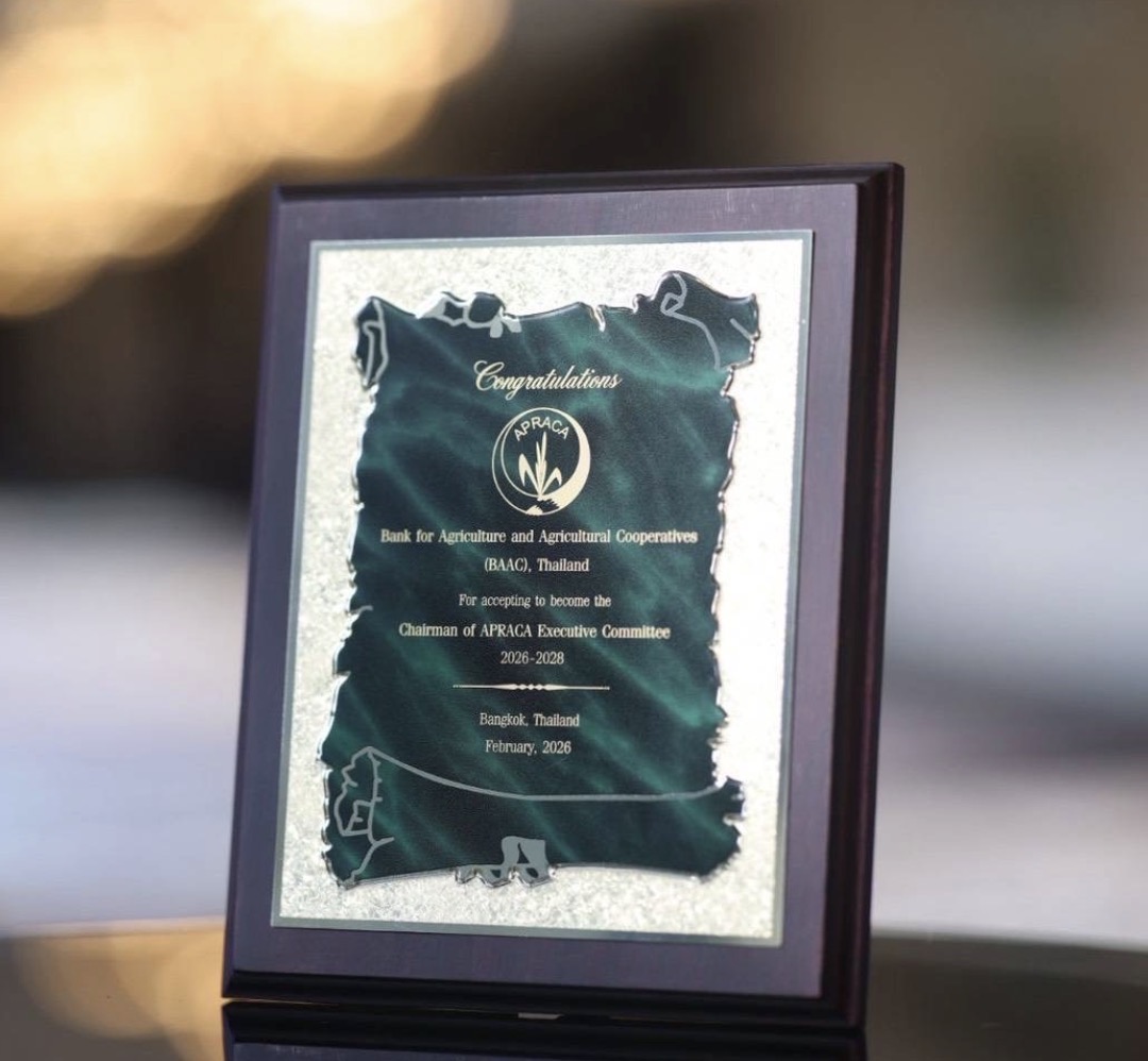 ในโอกาสนี้ Mr. QIAN Wenhui ประธานคณะกรรมการบริหาร Asia-Pacific Rural and Agricultural Credit Association : APRACA ผู้แทนธนาคารเพื่อการพัฒนาการเกษตรแห่งประเทศจีน (ADBC) ได้ส่งมอบตำแหน่งประธานคณะกรรมการบริหารสมาคมสินเชื่อการเกษตรและชนบทแห่งภาคพื้นเอเชียและแปซิฟิก (APRACA) ให้กับนายฉัตรชัย ศิริไล ผู้จัดการ ธ.ก.ส. ซึ่งจะดำรงตำแหน่งประธานคณะกรรมการบริหาร APRACA เป็นระยะเวลา 2 ปี (2569 – 2571) และเป็นอีกหนึ่งบทบาทสำคัญในการยกระดับบทบาทของประเทศไทยและ ธ.ก.ส. ในการผลักดันความร่วมมือด้านการสนับสนุนเงินทุนและการพัฒนาเกษตรกรรมของภูมิภาคในระยะยาว โดย ธ.ก.ส. พร้อมเป็นกลไกสำคัญในการสนับสนุนการพัฒนาภาคเกษตรและชนบท ควบคู่กับการเสริมสร้างความร่วมมือระดับภูมิภาคและระหว่างภูมิภาค ผ่านกลไกการเป็นแกนกลางการเกษตร (Essence of Agriculture) เพื่อยกระดับคุณภาพชีวิตเกษตรกรและเสริมสร้างความเข้มแข็งเศรษฐกิจฐานรากอย่างมั่นคงและยั่งยืน โดยมีนายเกรียงไกร กัลหะรัตน์ รองผู้จัดการ ธ.ก.ส. นางสาวพรหมกร พรหมขัติแก้ว ผู้ช่วยผู้จัดการ ธ.ก.ส. และสถาบันการเงินสมาชิก เข้าร่วมประชุม เมื่อวันที่ 10 กุมภาพันธ์ 2569 ณ โรงแรม Centara Grand at Central Plaza Ladprao กรุงเทพฯ