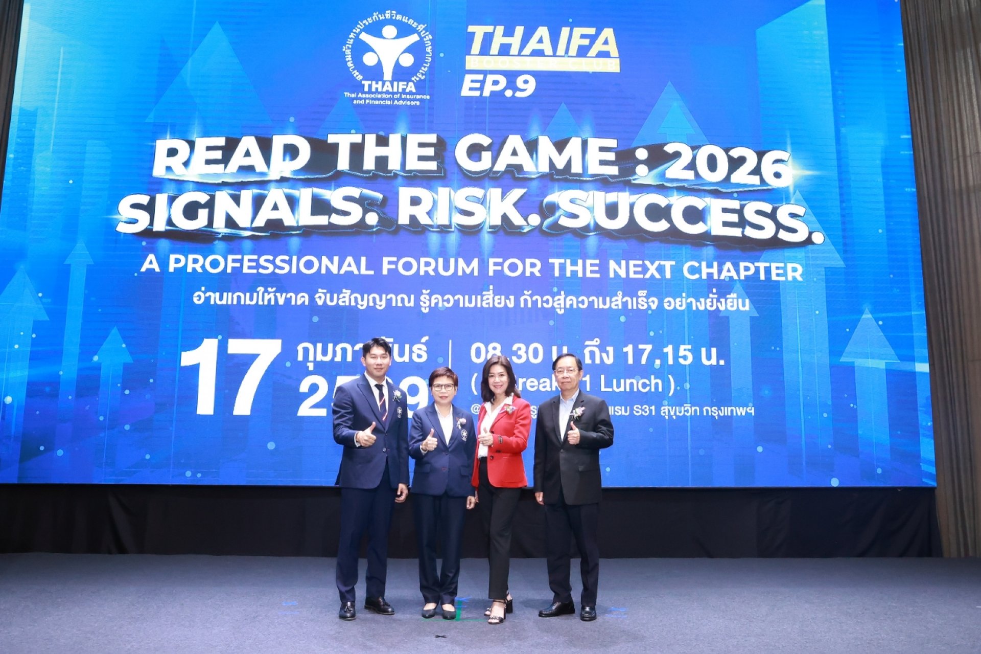 นางนุสรา (อัสสกุล) บัญญัติปิยพจน์ นายกสมาคมประกันชีวิตไทย ได้รับเชิญจากสมาคมตัวแทนประกันชีวิตและที่ปรึกษาการเงิน (THAIFA) เป็นวิทยากรบรรยายเรื่อง “แนวโน้มในอุตสาหกรรมประกันชีวิตของไทย” ภายในการสัมมนา “THAIFA BOOSTER CLUB EP.9” ให้ตัวแทนประกันชีวิตและที่ปรึกษาการเงินกว่า 250 ท่าน ณ ห้องบอลรูม 1 ชั้น 5 โรงแรม S31 สุขุมวิท กรุงเทพฯ เมื่อวันอังคารที่ 17 กุมภาพันธ์ 2569 ที่ผ่านมา เพื่อร่วมเป็นส่วนหนึ่งในการ “ฉีดวัคซีนทางปัญญา” และติดอาวุธทางกลยุทธ์ให้แก่บุคลากรในธุรกิจประกันชีวิตได้เท่าทันต่อการเปลี่ยนแปลงของเทคโนโลยีและพฤติกรรมผู้บริโภค