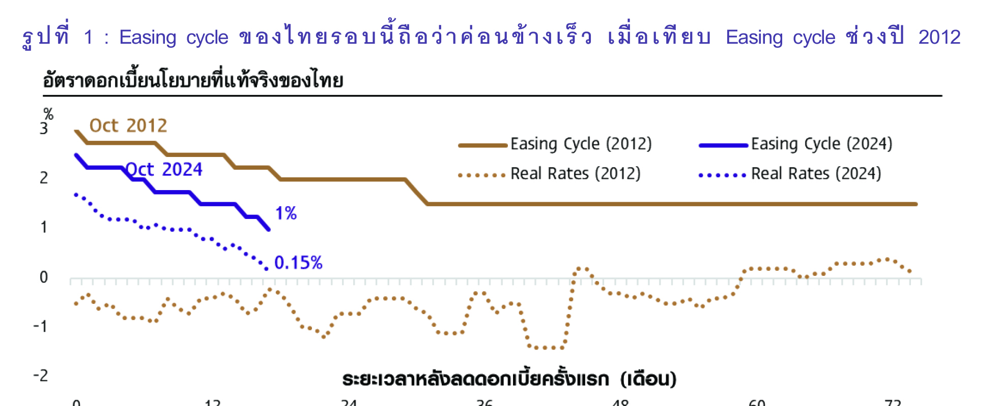 รูปที่ 1 : Easing cycle ของไทยรอบนี้ถือว่าค่อนข้างเร็ว เมื่อเทียบ Easing cycle ช่วงปี 2012