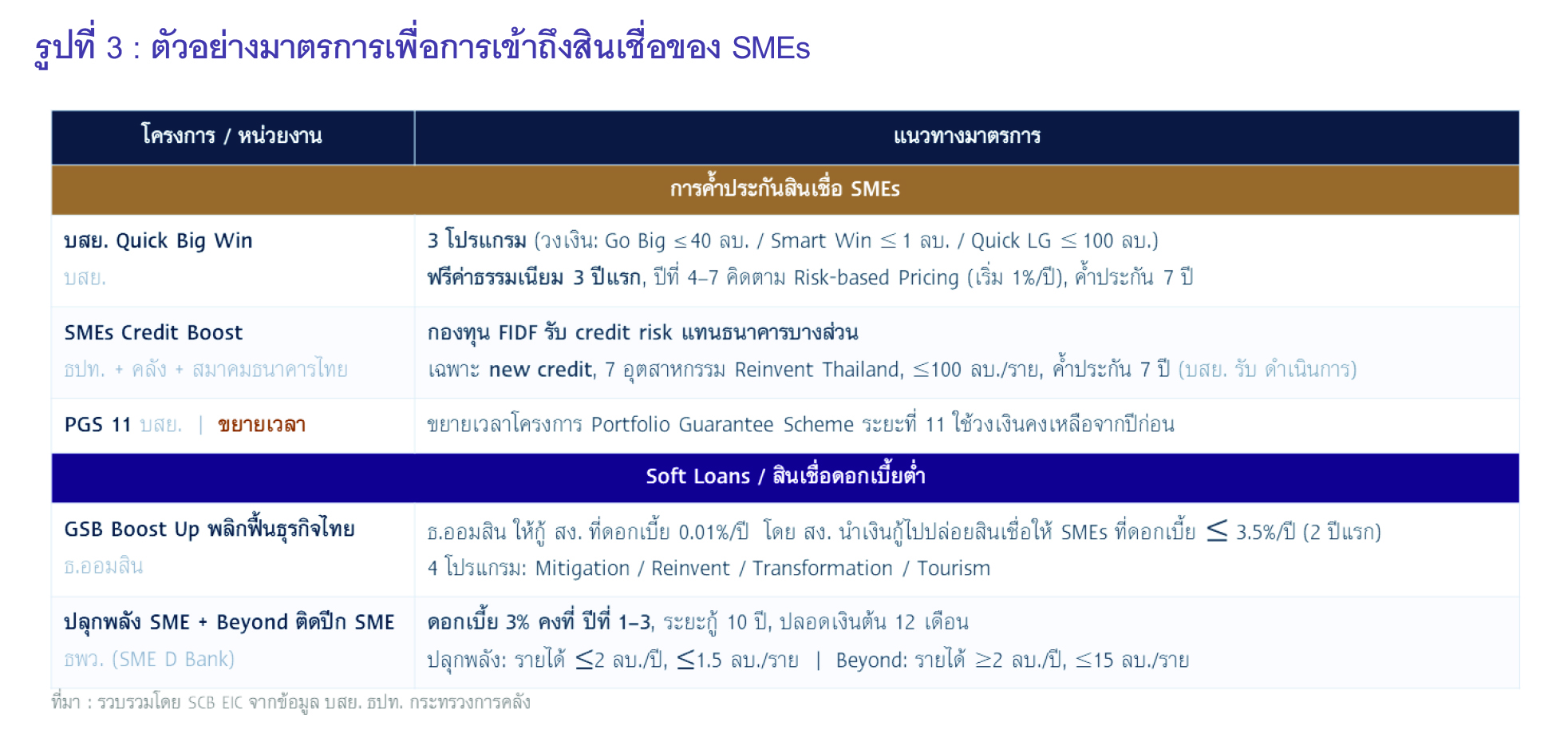 รูปที่ 3 : ตัวอย่างมาตรการเพื่อการเข้าถึงสินเชื่อของ SMEs