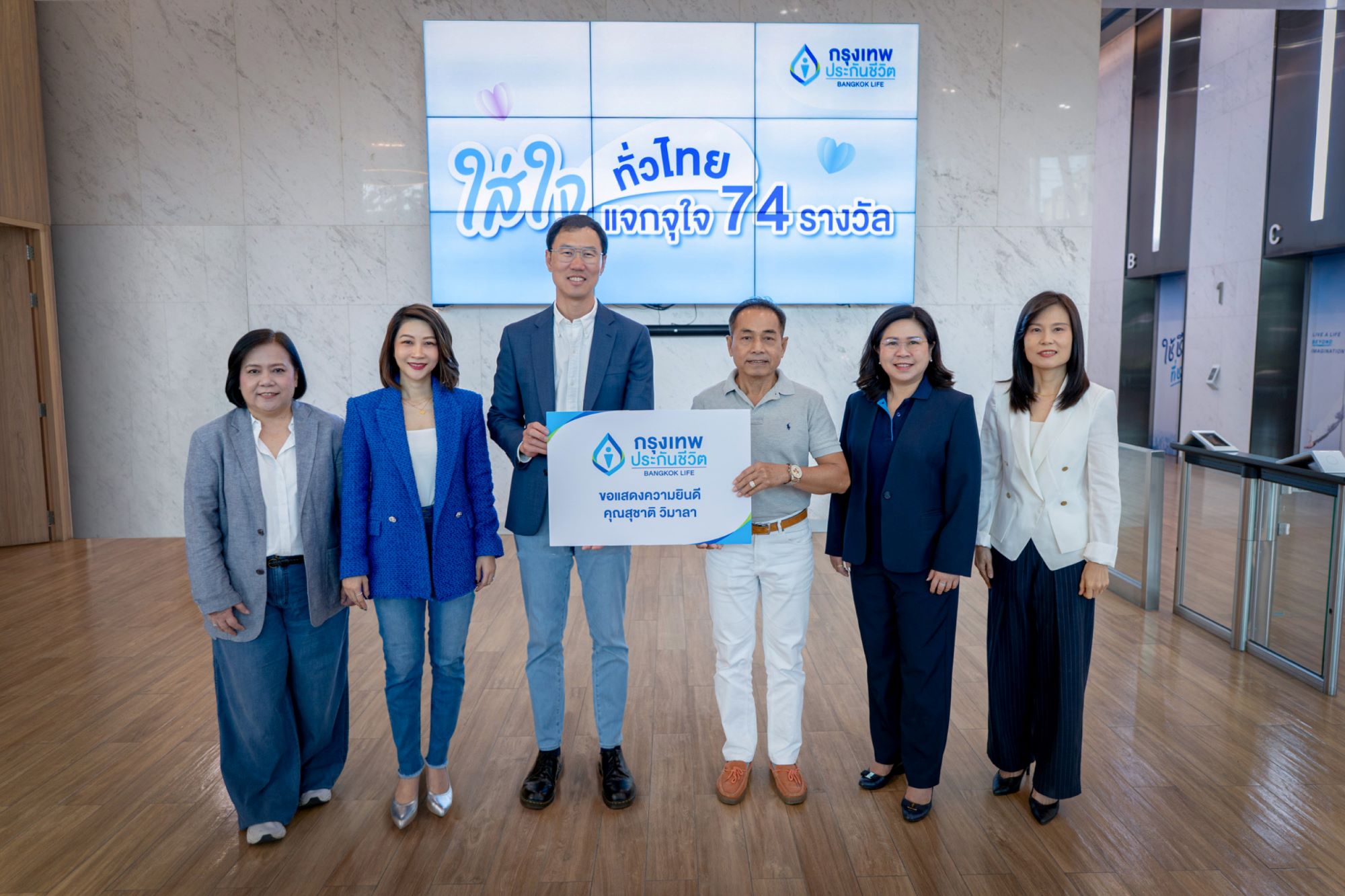 กรุงเทพประกันชีวิต เดินหน้าสร้างประสบการณ์การตลาดที่แตกต่าง เนื่องในโอกาสฉลองครบรอบ 74 ปี ด้วยการจัดแคมเปญ “ใส่ใจทั่วไทย แจกจุใจ 74 รางวัล” มอบรางวัลใหญ่ รถยนต์ไฟฟ้า Volvo รุ่น EX30 Ultra - Twin Motor Performance สี Cloud Blue พร้อมอุปกรณ์ชาร์จไฟ จำนวน 1 รางวัล รวมมูลค่า 1,540,000 บาท ให้แก่ผู้โชคดี นายสุชาติ วิมาลา เพื่อสะท้อนแนวคิดการเติบโตอย่างยั่งยืน พร้อมตอกย้ำภาพลักษณ์การเป็นบริษัทประกันชีวิตอันดับหนึ่งในด้านความใส่ใจ โดยมี นายโชน โสภณพนิช กรรมการผู้จัดการใหญ่และประธานเจ้าหน้าที่บริหาร นางสาวอรนาฎ นชะพงษ์ ผู้ช่วยผู้จัดการใหญ่ สายกลยุทธ์การตลาดและบริหารจัดการลูกค้า นางลัดดาวัลย์ สิทธิวรนันท์ ผู้ช่วยผู้จัดการใหญ่ สายช่องทางสถาบันการเงินและพันธมิตรทางธุรกิจ พร้อมคณะผู้บริหารจากธนาคารกรุงเทพ ร่วมแสดงความยินดี ณ บริษัท กรุงเทพประกันชีวิต จำกัด (มหาชน) สำนักงานใหญ่