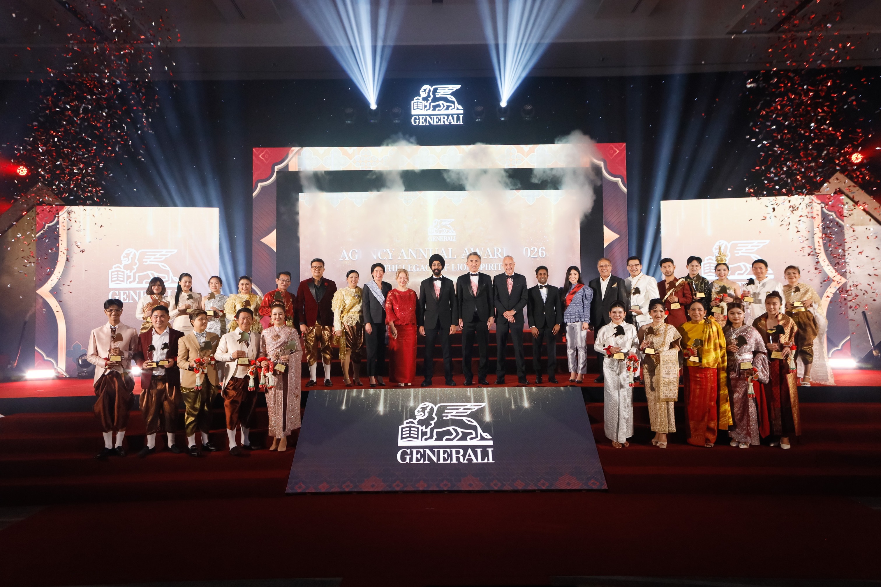 สำหรับงาน Agency Annual Award 2026 นับเป็นเวทีสำคัญในการสะท้อนพลังความสำเร็จของเครือข่ายตัวแทนภายใต้เจนเนอราลี่ ไทยแลนด์ ซึ่งเป็นหนึ่งในกลุ่มบริษัทประกันชั้นนำระดับโลก ที่จัดขึ้นเพื่อตอกย้ำวิสัยทัศน์ขององค์กรในการสร้างตัวแทนมืออาชีพที่มีศักยภาพสูง พร้อมยกระดับมาตรฐานการให้คำปรึกษาด้านการวางแผนทางการเงินและประกันชีวิต เดินหน้าส่งมอบความมั่นคงและความคุ้มครองที่ยั่งยืนให้กับลูกค้าและสังคมไทยในระยะยาว โดยภายในงานได้รับเกียรติจากคณะผู้บริหารของกลุ่มบริษัทเจนเนอราลี่ ไทยแลนด์ นำโดย นายอาร์ช คอลมิ ประธานเจ้าหน้าที่บริหาร กลุ่มบริษัท เจนเนอราลี่ ไทยแลนด์ และ นายสมศักดิ์ อรรถเสรีพงศ์ ประธานเจ้าหน้าที่ช่องทางการจัดจำหน่ายผ่านตัวแทน บมจ. เจนเนอราลี่ ประกันชีวิต (ไทยแลนด์) พร้อมด้วยผู้บริหารและตัวแทนประกันชีวิตจากทั่วประเทศ เข้าร่วมเฉลิมฉลองความสำเร็จและแบ่งปันช่วงเวลาแห่งความภาคภูมิใจร่วมกัน ท่ามกลางบรรยากาศแห่งความสง่างามและพลังของสัญลักษณ์ “สิงโต” ซึ่งเป็นตัวแทนของความแข็งแกร่ง ความกล้าหาญ และความเป็นผู้นำตามปรัชญาขององค์กร