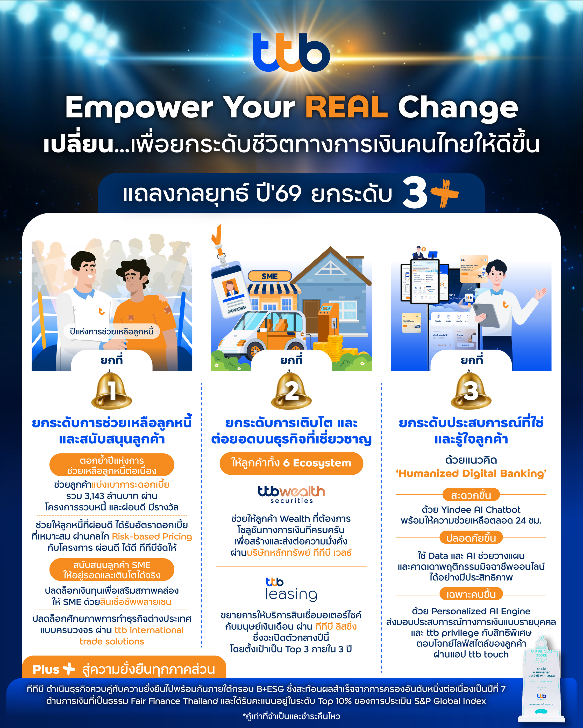 ภายใต้แนวคิด Empower Your REAL Change ทีทีบีกำหนดทิศทาง ปี 2569 ผ่านกลยุทธ์ “ยกระดับ 3+”