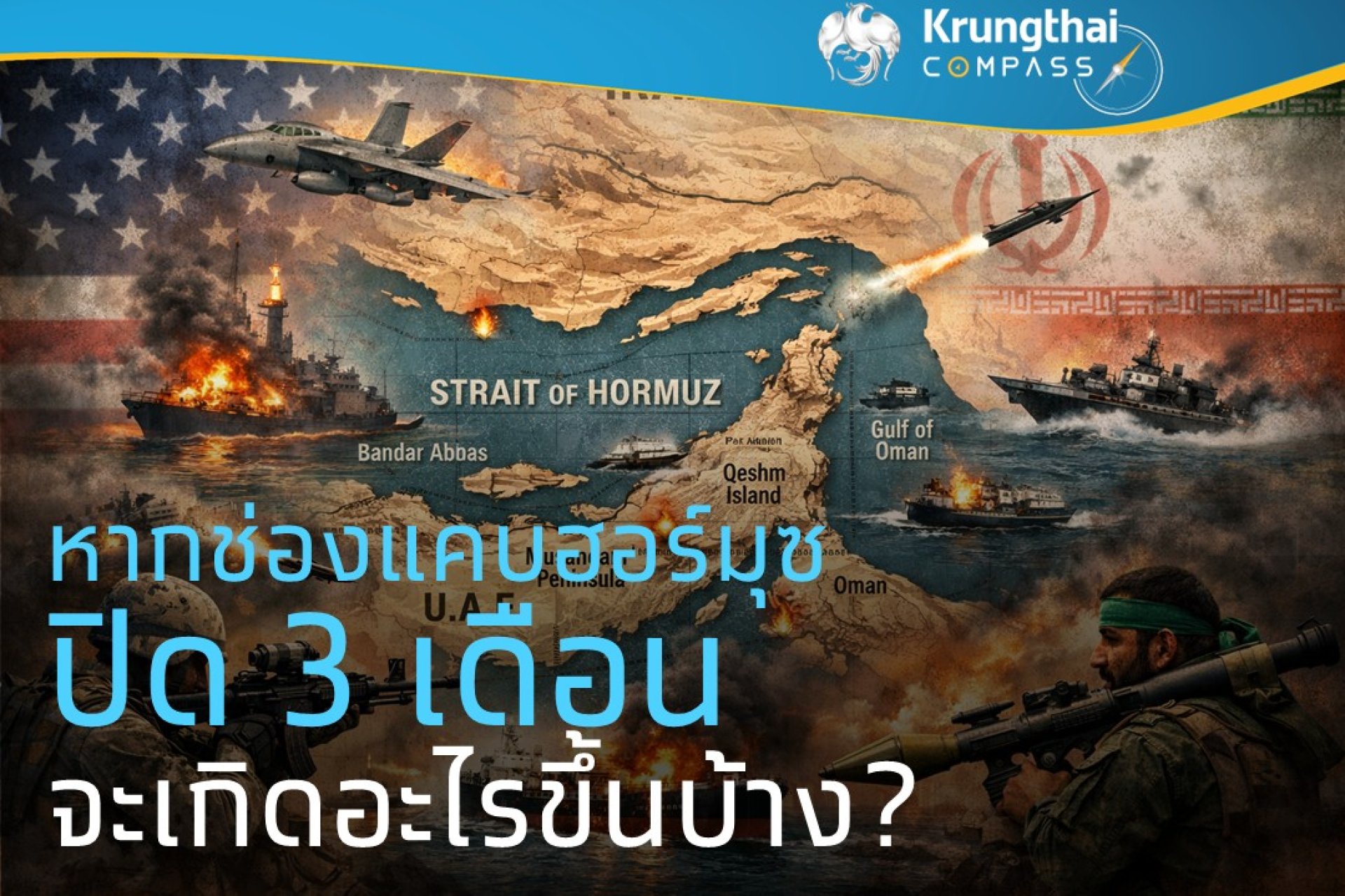 โดย Krungthai COMPASS ประเมินว่า หากการปิดช่องแคบฮอร์มุซและการสู้รบมีแนวโน้มกินระยะ เวลา 3 เดือน (มี.ค.-พ.ค. 69) จะกระทบต่อธุรกิจไทยแบ่งออกเป็น 3 ระยะ ได้แก่