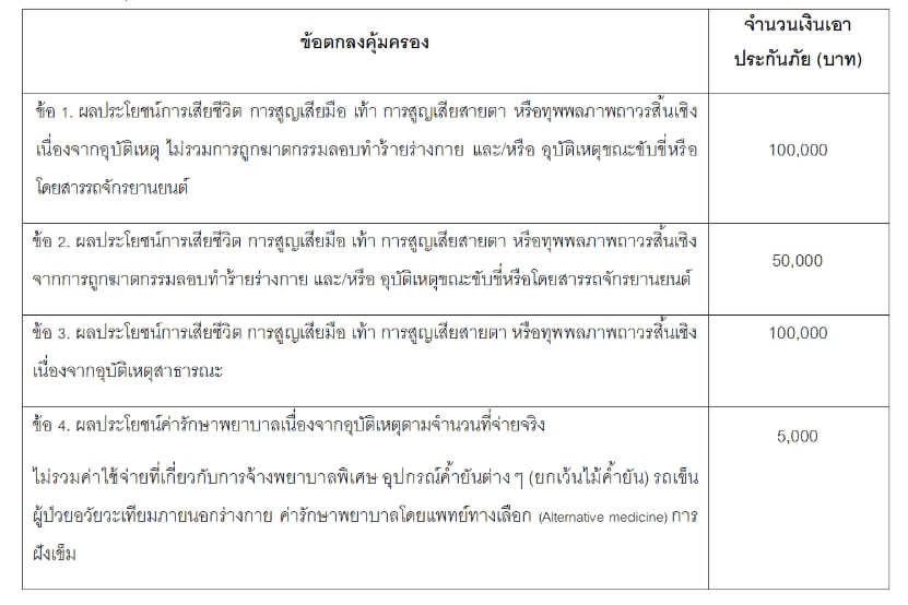 - เงื่อนไขและความคุ้มครองเป็นไปตามที่ระบุในกรมธรรม์