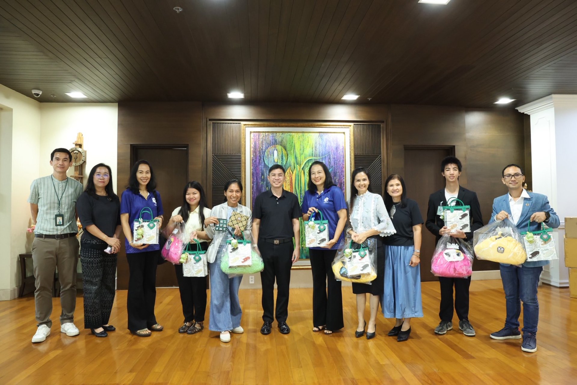นายฉัตรชัย ศิริไล ผู้จัดการธนาคารเพื่อการเกษตรและสหกรณ์การเกษตร (ธ.ก.ส.) ให้การต้อนรับกลุ่มลูกค้าเกษตรกร หัวขบวนในโอกาสเข้าพบเพื่อสวัสดีปีใหม่เนื่องในเทศกาลสงกรานต์ ประจำปี 2569 ได้แก่ บริษัท สไมล์ รับเบอร์ จำกัด จังหวัดระยอง วิสาหกิจชุมชนผู้ผลิตและแปรรูปยางพาราไปสู่ผลิตภัณฑ์เพื่อสุขภาพคุณภาพสูง ภายใต้แบรนด์สไมล์รับเบอร์ (Smile Rubber) อาทิ หมอน เบาะรองนั่งและที่นอนยางพาราเพื่อสุขภาพ วิสาหกิจชุมชนวัยหวาน จังหวัดเพชรบุรี ดำเนินกิจกรรมร่วมกับกลุ่มแม่บ้านเกษตรกรในชุมชนในการนำผักเคลมายกระดับเป็นผลิตภัณฑ์สำหรับโรยข้าวที่มีรสชาติอร่อย และยังคงรักษาคุณค่าทางอาหาร ภายใต้แพ็คเกจที่ทันสมัย สะอาด มีมาตรฐาน และมีการนำส่วนต่าง ๆ ของต้นกล้วยมาพัฒนาเป็นผลิตภัณฑ์ที่หลากหลาย อาทิ กระเป๋าใยกล้วย และผ้าใยกล้วย วิสาหกิจชุมชนฟรุทส์ฟาร์มอุบล จังหวัดอุบลราชธานี ดำเนินธุรกิจปลูกกล้วยหอมทองจำหน่ายไปยังร้านสะดวกซื้อเซเว่น อีเลฟเว่น ศูนย์การค้าโลตัส และส่งออกจำหน่ายไปยังประเทศญี่ปุ่น เป็นหัวขบวนหลักของเกษตรกรผู้ปลูกกล้วยใน 5 จังหวัด ได้แก่ จังหวัดสุรินทร์ จังหวัดศรีสะเกษ จังหวัดอำนาจเจริญ จังหวัดมุกดาหาร และจังหวัดยโสธร ซึ่งมีการรวมกลุ่มเกษตรกรในพื้นที่พร้อมสนับสนุนการนำนวัตกรรมและปุ๋ยอินทรีย์มาใช้ในกระบวนการผลิตกล้วยหอมทอง เพื่อลดต้นทุนการผลิตและเพิ่มคุณภาพสินค้าให้ได้มาตรฐานสากล วิสาหกิจชุมชนธรรมะรักษา จังหวัดลำปาง กลุ่มผู้ผลิตข้าวและธัญพืชอินทรีย์ตามวิถีธรรมชาติ ผลิตและจำหน่าย ข้าวเพื่อสุขภาพและข้าวพันธุ์พื้นเมืองแปรรูป เช่น ข้าวทับทิมชุมแพ ข้าวลืมผัว นอกจากนี้ ยังมีการยกระดับผลิตภัณฑ์ไปสู่ผลิตภัณฑ์เสริมอาหารที่ผ่านกระบวนการผลิตแบบเกษตรอินทรีย์ เต็มไปด้วยคุณภาพและคุณค่าทางสารอาหาร อาทิ วุ้นเจลาตินสำเร็จรูปที่ผลิตจากผำ และชาที่ผลิตจากพืชพื้นบ้านชนิดต่าง ๆ และวิสาหกิจชุมชนเกษตรปลอดภัยสูง จังหวัดฉะเชิงเทรา ผู้ผลิตเมล่อนสายพันธุ์ญี่ปุ่นเกรดพรีเมียมที่ได้มาตรฐาน GAP/Organic โดยมีการนำผลผลิตจากเมล่อนและผลไม้ในพื้นที่ เช่น มะม่วง หรือมะพร้าวมาสร้างมูลค่าเพิ่มด้วยการผลิตเครื่องดื่มไวน์และแอลกฮอล์ภายใต้แบรนด์ FURANO ส่งจำหน่ายไปยัง CJ Express ทั่วประเทศ