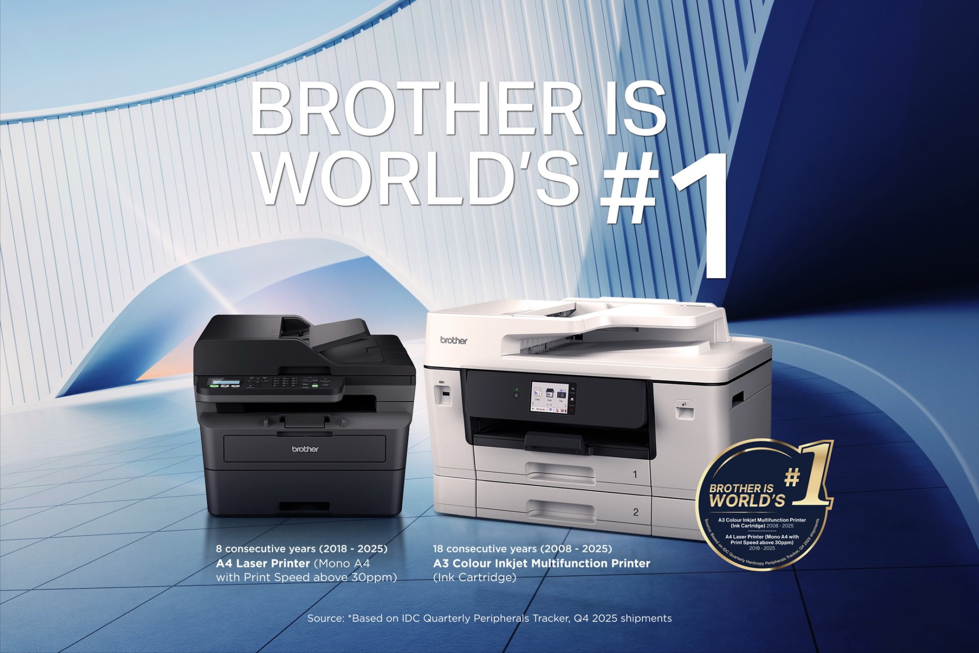 บราเดอร์ครองแชมป์เครื่องพิมพ์อันดับ 1 ของโลก จากการจัดอันดับโดย IDC 2026 ต่อเนื่อง 18 ปีในกลุ่ม A3 Color Inkjet MFP และ 8 ปีในกลุ่ม A4 Laser Printer
