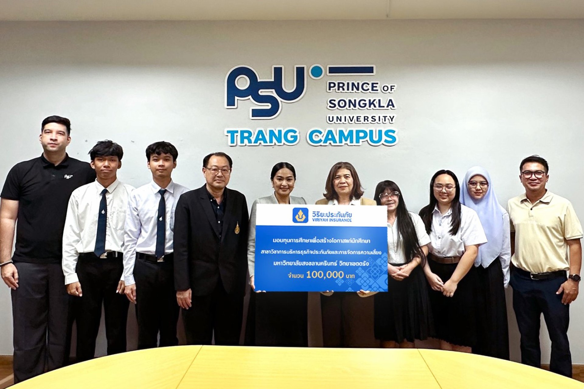 ผศ. ดร.ปาริชาติ มณีมัย คณบดีคณะพาณิชยศาสตร์และการจัดการ มหาวิทยาลัยสงขลานครินทร์ วิทยาเขตตรัง รับมอบทุนการศึกษา มูลค่า 100,000 บาท จากบริษัท วิริยะประกันภัย จำกัด (มหาชน) โดยมี นางเสาวคนธ์ วงศ์กองแสง ผู้จัดการฝ่ายปฏิบัติการภาค 5 (ภาคใต้) ด้านสาขา เป็นผู้แทนมอบ เพื่อส่งเสริมโอกาสทางการศึกษาให้แก่นักศึกษาชั้นปีที่ 1 ในหลักสูตรด้านประกันภัยและการจัดการความเสี่ยง สาขาการบริหารธุรกิจประกันภัยและการจัดการความเสี่ยง สามารถพัฒนาศักยภาพการเรียนรู้ของตนเองได้อย่างมีประสิทธิภาพ โดยมี ผศ. ดร.พงษ์พิช เพชรสกุลวงศ์ ประธานหลักสูตรบริหารธุรกิจบัณฑิต สาขาการบริหารธุรกิจประกันภัยและการจัดการความเสี่ยง และผศ. ดร.ณรงค์ฤทธิ์ ปริสุทธิ์กุล ผู้ช่วยอธิการบดีฝ่ายวิชาการและวิจัย ร่วมเป็นเกียรติในพิธีมอบ ณ ห้องประชุม MBA มหาวิทยาลัยสงขลานครินทร์ วิทยาเขตตรัง