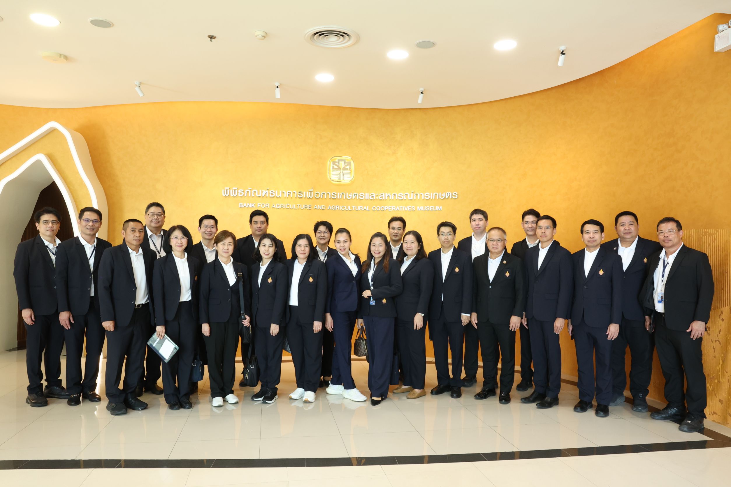 นายฉัตรชัย ศิริไล ผู้จัดการธนาคารเพื่อการเกษตรและสหกรณ์การเกษตร (ธ.ก.ส.) พร้อมด้วย นายไพศาล หงษ์ทอง รองผู้จัดการกลุ่มงานธุรกิจ ให้การต้อนรับคณะศึกษาดูงานหลักสูตรนักบริหารการงบประมาณระดับสูง (นงส.) รุ่นที่ 13 สถาบันพัฒนาบุคลากรด้านการงบประมาณ สำนักงบประมาณ นำโดย นางสาวประนิอร เตียวตรานนท์ ที่ปรึกษาสำนักงบประมาณ ได้เข้ารับฟังการบรรยายในหัวข้อ ธ.ก.ส. ธนาคารพัฒนาชนบทที่ยั่งยืน มุ่งสู่การเป็นแกนกลางการเกษตร (Essence of Agriculture) โดยนางสาวไข่มุก จูงใจจารุมาศ รองผู้จัดการกลุ่มงานพัฒนาเศรษฐกิจ และหัวข้อการบริหารจัดการการเงินและความเสี่ยงทางการเงินสู่ความสำเร็จ โดย นางสาวปัทมา ถุงทอง ผู้ช่วยผู้จัดการสายงานบัญชีและการเงิน พร้อมกับที่ได้เข้าเยี่ยมชมพิพิธภัณฑ์และ หอศิลป์ของ ธ.ก.ส. ที่จัดแสดงเรื่องราวประวัติความเป็นมาของ ธ.ก.ส. ภายใต้แนวคิด BAAC Journey โดยนำเทคโนโลยี Interactive Wall และ Immersive Art Experience มานำเสนอเรื่องราวความเป็นมาของ ธ.ก.ส. เพื่อสร้างการมีส่วนร่วมของผู้เข้าชมและสื่อสารเรื่องราวที่น่าสนใจและสนุกสนาน พร้อมการจัดแสดงสินค้าแกลมเกษตรของลูกค้าและผนังกระปุก ธ.ก.ส. แห่งความทรงจำ รวมกระปุกออมทรัพย์ ธ.ก.ส. ตั้งแต่อดีตถึงปัจจุบันที่หาดูได้ยากเพื่อให้ผู้เข้าร่วมศึกษาดูงานได้ถ่ายรูปเป็นที่ระลึกอีกด้วย