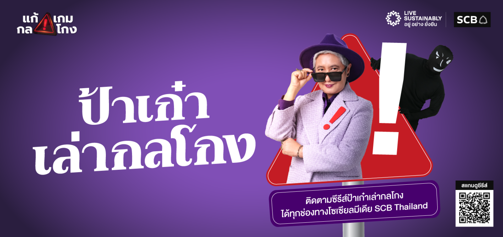 ที่ผ่านมา ธนาคารได้ขับเคลื่อนการสื่อสารอย่างต่อเนื่อง ผ่านแคมเปญแก้เกมกลโกง เพื่อสื่อสารไปยังกลุ่มเป้าหมายในวงกว้าง ล่าสุดธนาคารได้ต่อยอดสู่ซีรีส์ “ป้าเก๋าเล่ากลโกง” ภายใต้แคมเปญดังกล่าว เพื่อมุ่งเน้นการให้ความรู้แก่กลุ่มลูกค้า ประชาชน และผู้สูงวัยให้ปลอดภัยจากมิจฉาชีพ”