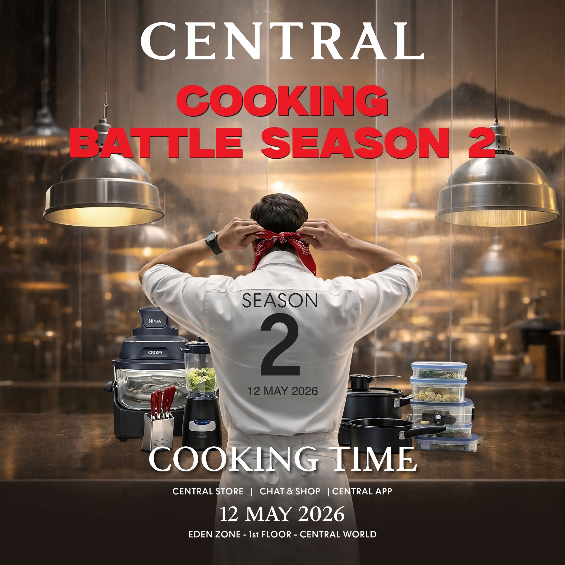 ห้างสรรพสินค้าเซ็นทรัล เสิร์ฟแคมเปญ “Central Cooking Time” เอาใจสายคุกกิ้งเลิฟเวอร์ ให้การทำอาหารเป็นเรื่องง่าย ๆ พร้อมโปรโมชันและดีลพิเศษตลอดเดือนพฤษภาคม 2569 และพลาดไม่ได้! กับ “Cooking Battle Season 2” เวทีประชันฝีมือการทำอาหาร ชิงรางวัลรวมกว่า 200,000